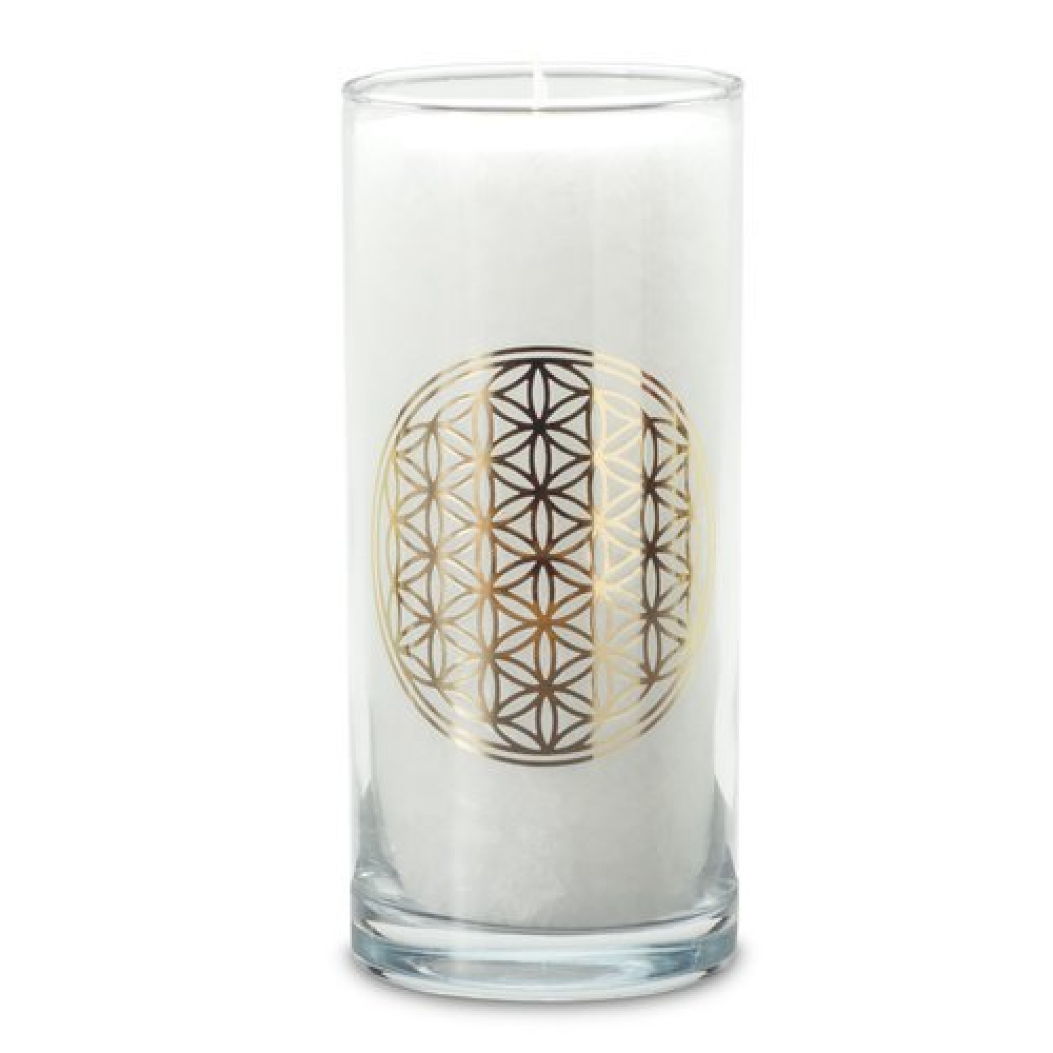 Magische Kaars | Bloem van het Leven 30348FOL | Wit | Ø 6 cm, H 14 cm – 60 uur brandduur