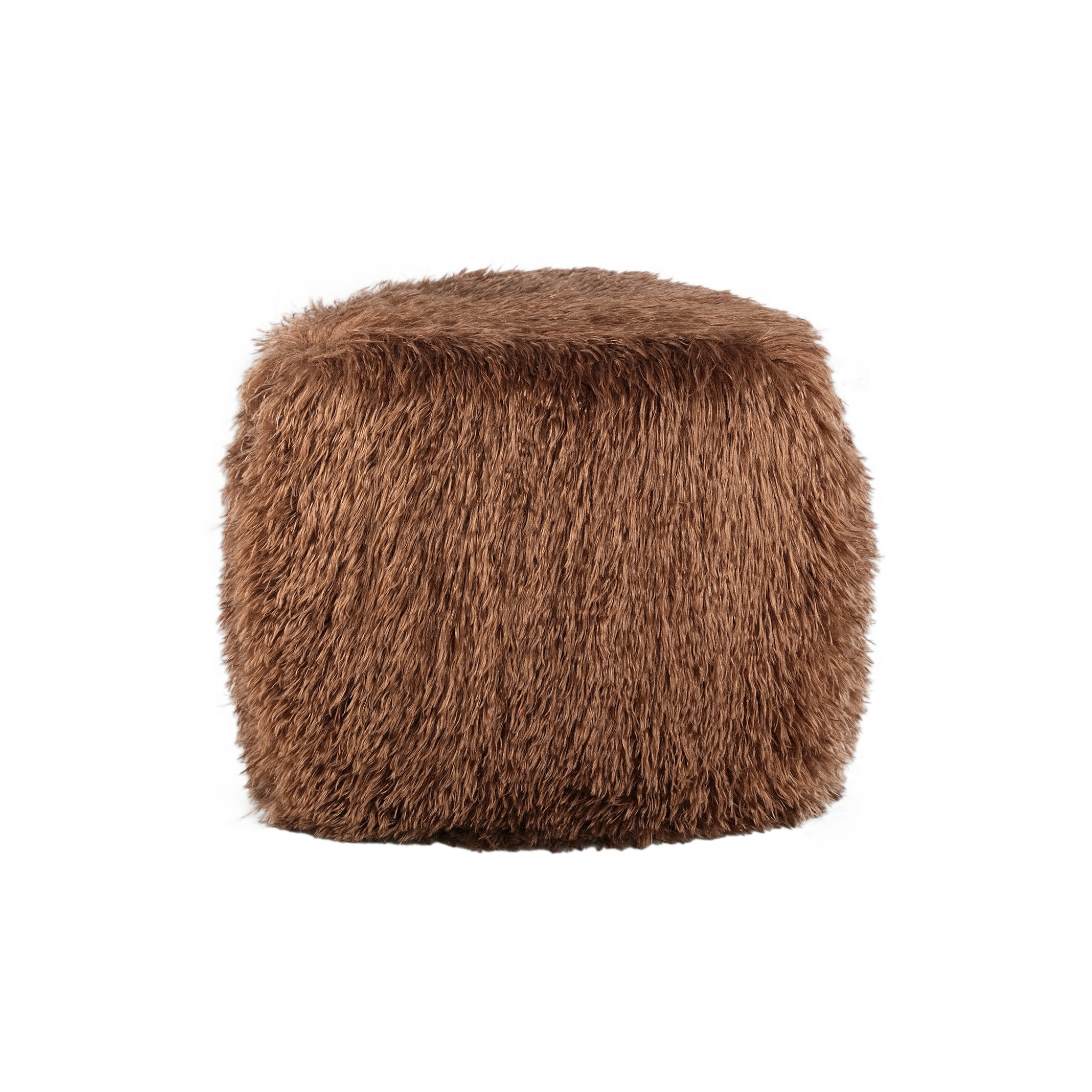 Miho Brown Fake Fur Poof | Small Triangle Stone | 46x43x46 cm