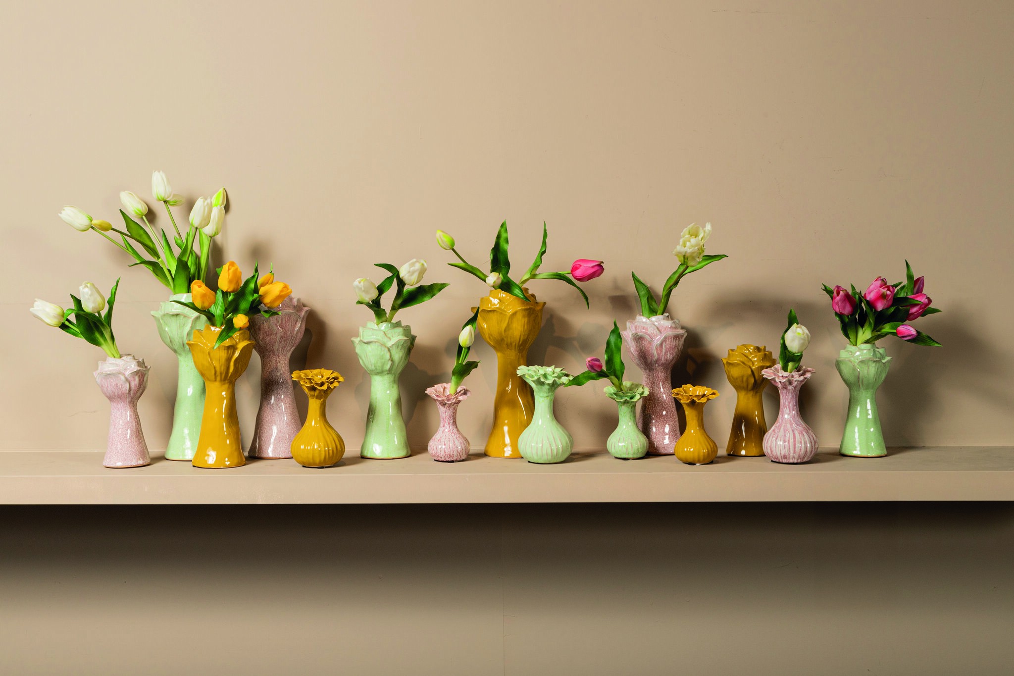 De Minerva Yellow Ceramic Flower Shaped Vase L is een opvallende, handgemaakte vaas in de vorm van een bloem. Met een hoogte van 30 cm en een diameter van 14 cm, is deze vaas ideaal voor verse bloemen, droogbloemen of gewoon als stijlvol decoratief object.