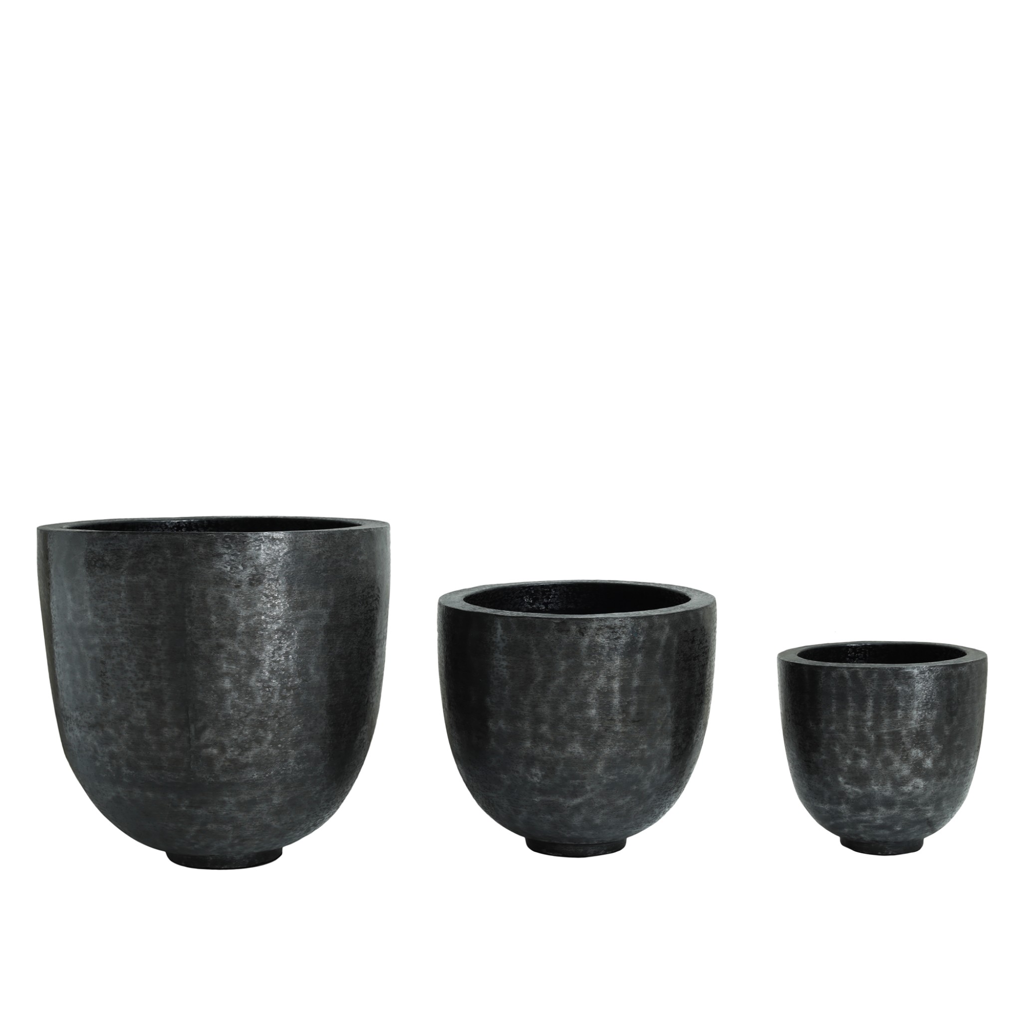 Mirella Black Brush Aluminium Pots Set | Set van 3 Waterdichte Binnenpotten