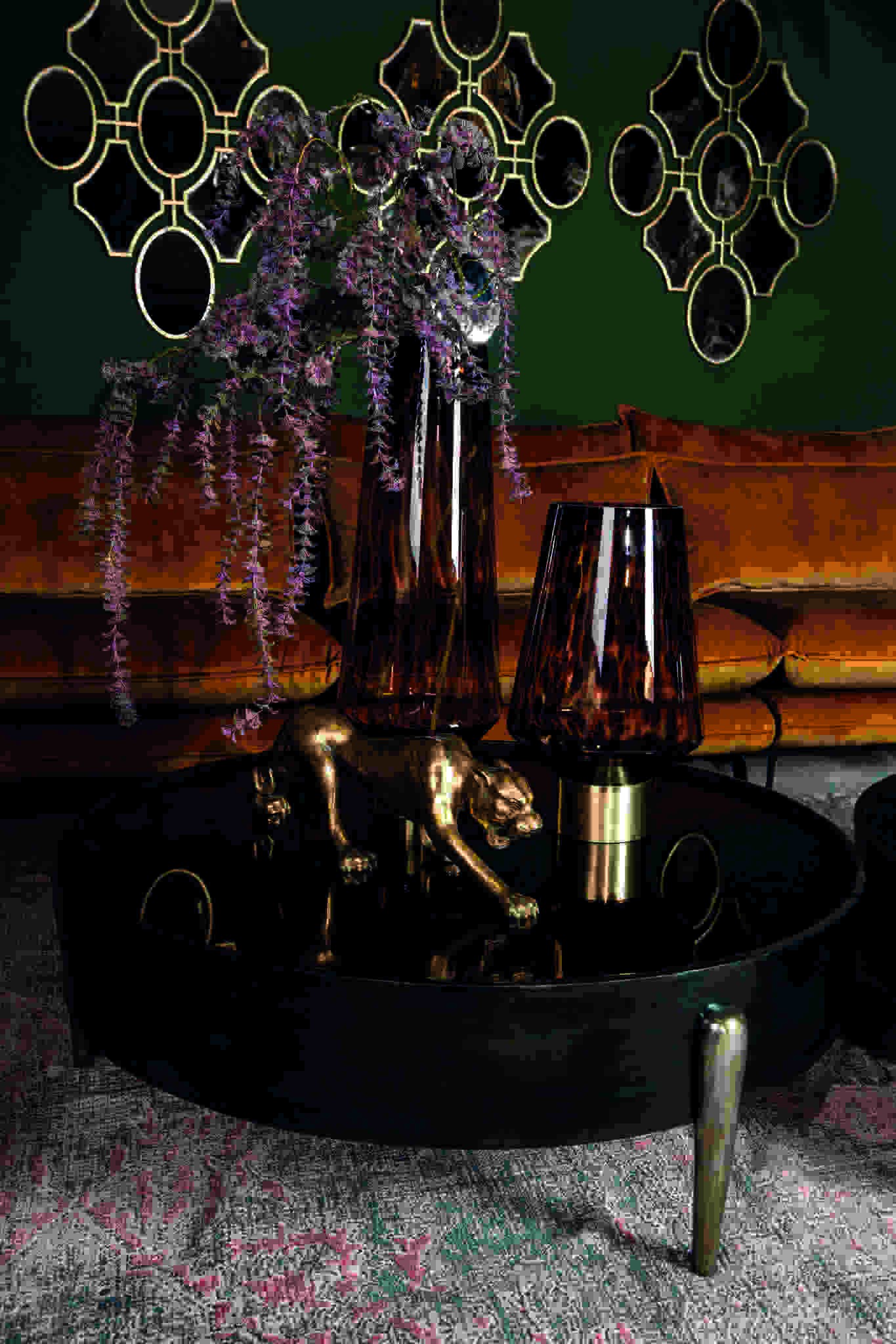 Donker glas met antiek koperen finish