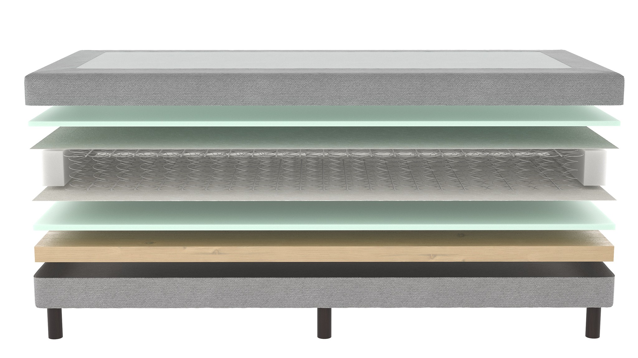 Losse boxspring met bonellvering in grijs, geschikt voor een matras naar keuze. Veerkrachtig, onderhoudsvriendelijk en belastbaar tot 120 kg per persoon.
