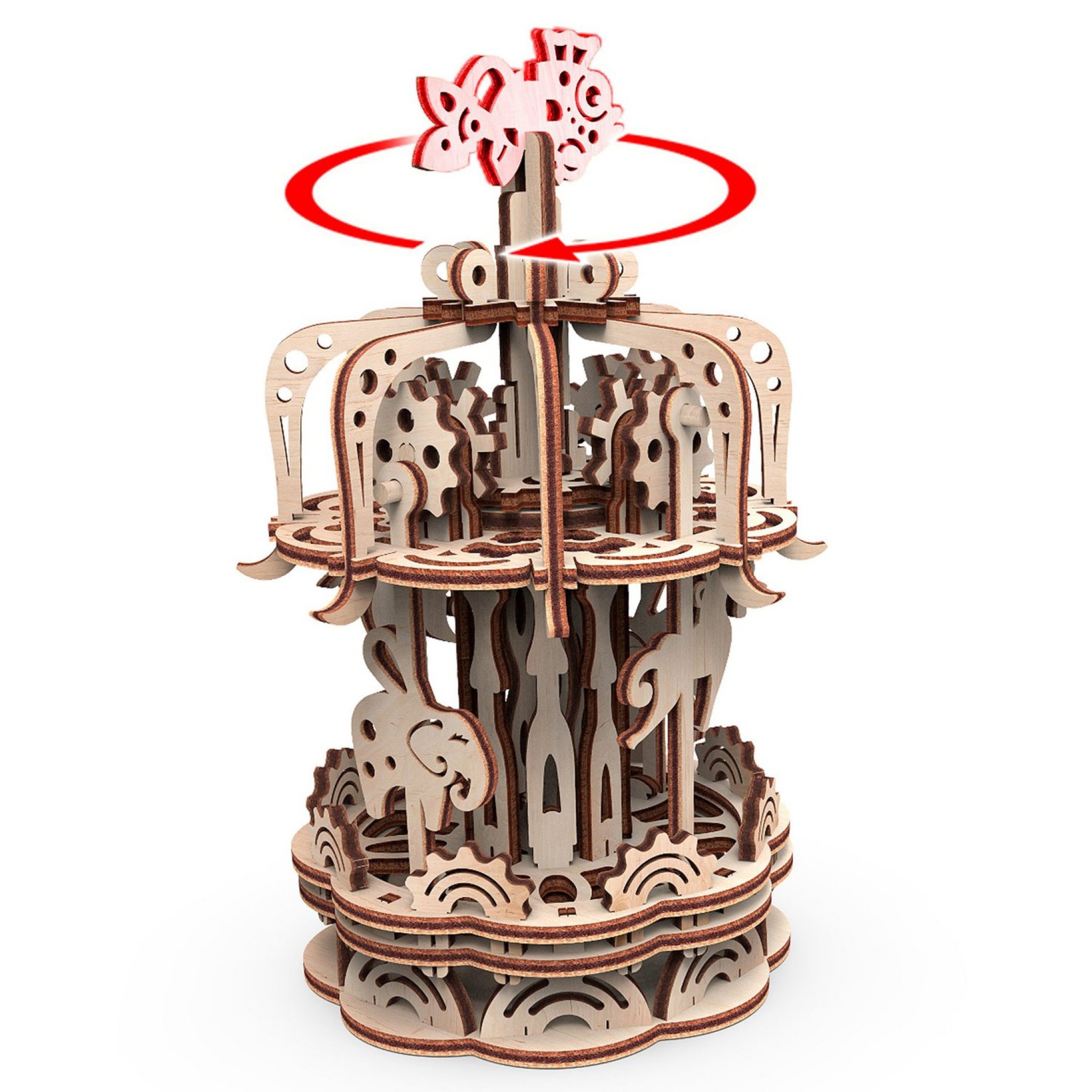 Bouw je eigen charmante 3D Carousel met de Mr. Playwood puzzel. Geen lijm nodig, perfect voor creatievelingen vanaf 14 jaar.