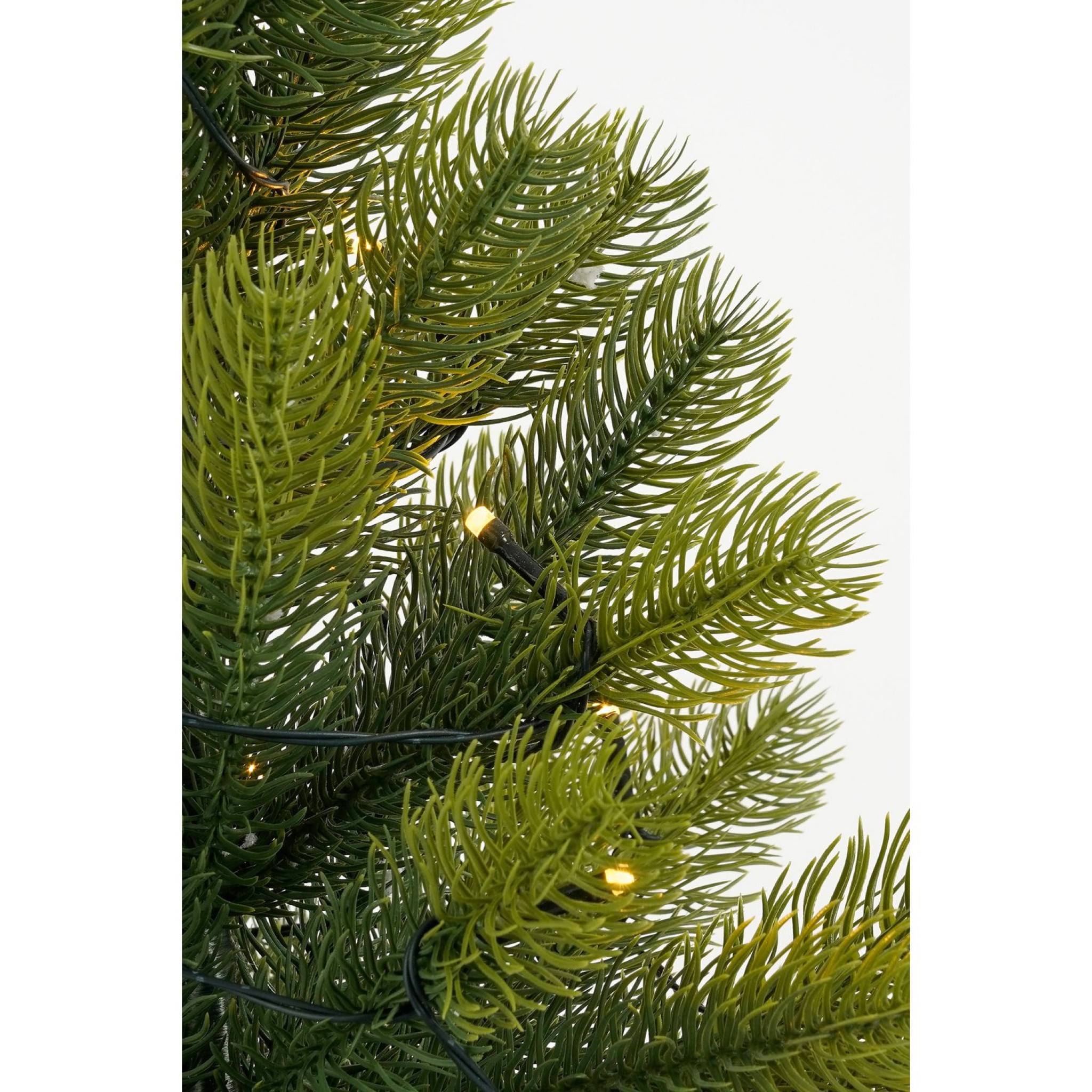 De boom is voorzien van 50 natuurgetrouwe PE-takken, waardoor hij bijna niet van een echte kerstboom te onderscheiden is. De 25 warmwitte LED-lampjes zorgen voor een warme, feestelijke sfeer en werken op 2 AA-batterijen, zodat je de boom overal kunt plaatsen zonder gedoe met snoeren.