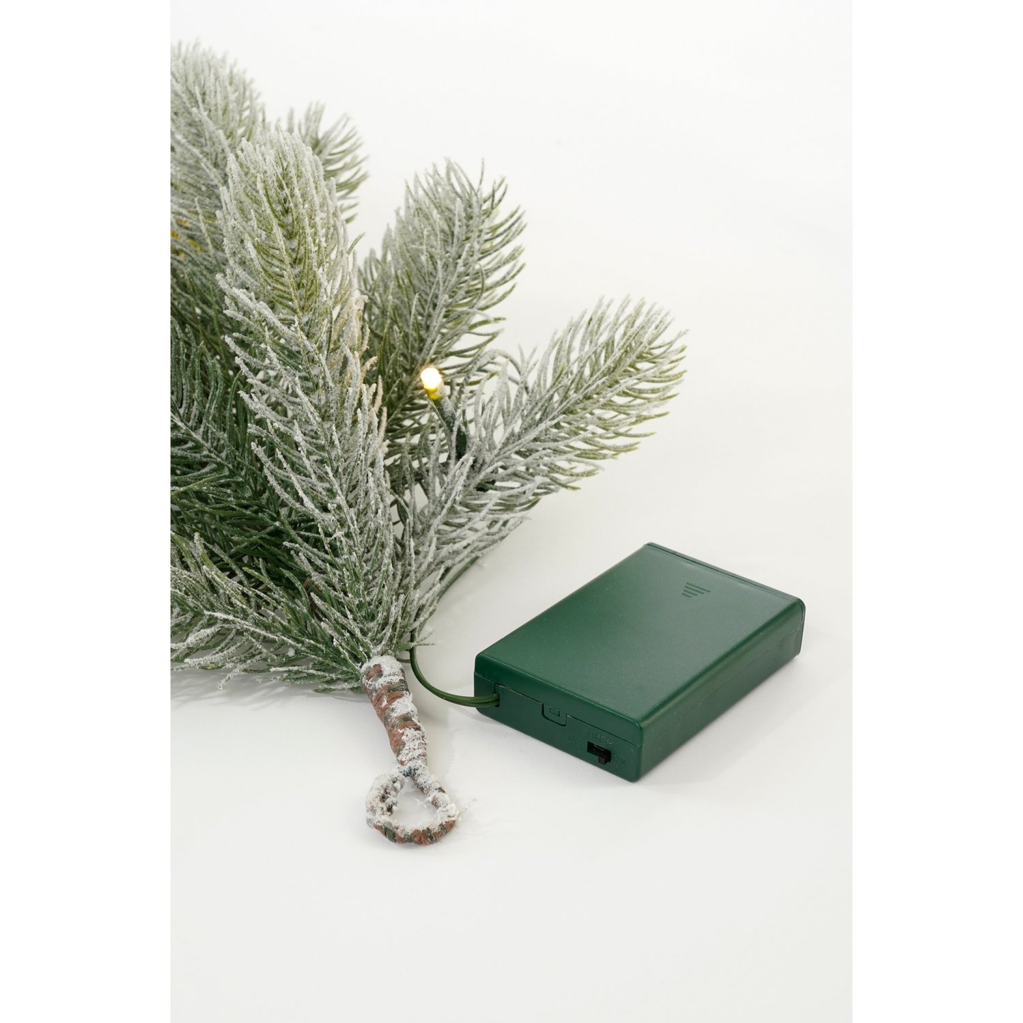 De subtiele frosted afwerking zorgt voor een zachte winterlook die perfect past bij het seizoen. De guirlande is uitgerust met 40 warm witte LED-lampjes die werken op 3 AA-batterijen (niet inbegrepen). Hierdoor heb je geen stopcontact nodig en kun je hem overal neerleggen of ophangen: op de schouw, langs de trapleuning, op een dressoir of rond een deuropening.
