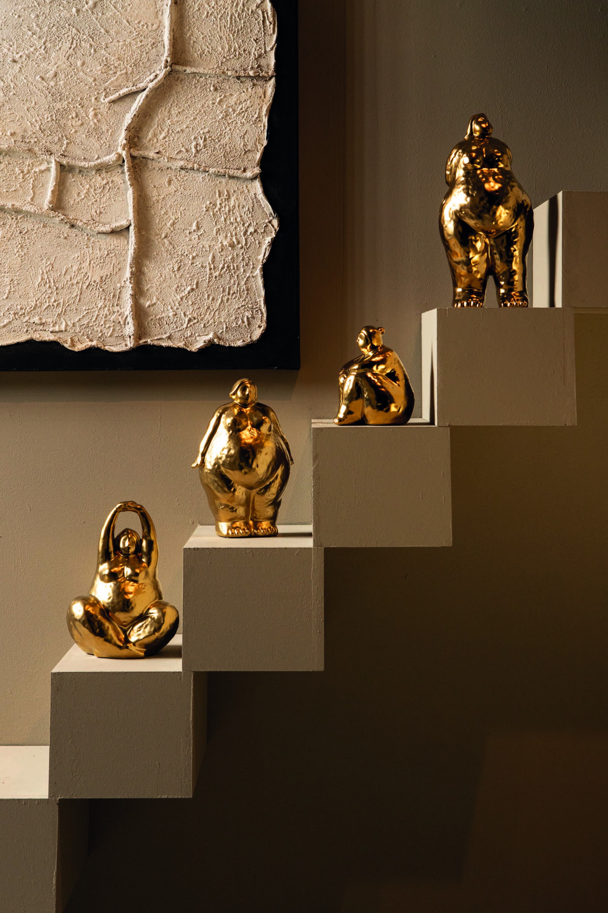 Oday Beeld | Gouden Keramische Zittende Vrouw A 26 cm