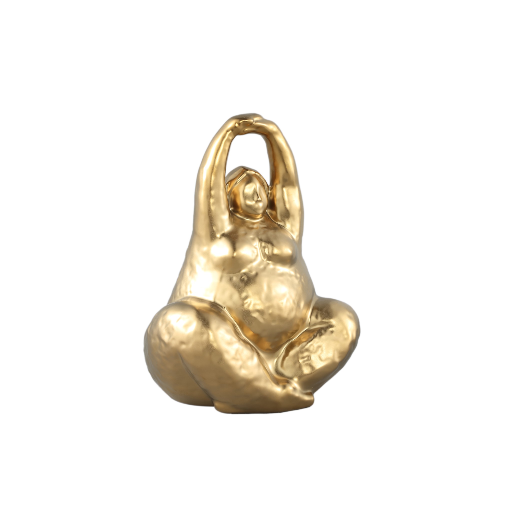 De Oday Gold Ceramic Women Statue Sitting A is een verfijnd keramisch beeld met een glanzende goudkleurige afwerking. De zittende vrouwenfiguur straalt rust, elegantie en verfijning uit en vormt een artistiek accent dat moeiteloos past in moderne of klassieke interieurs.