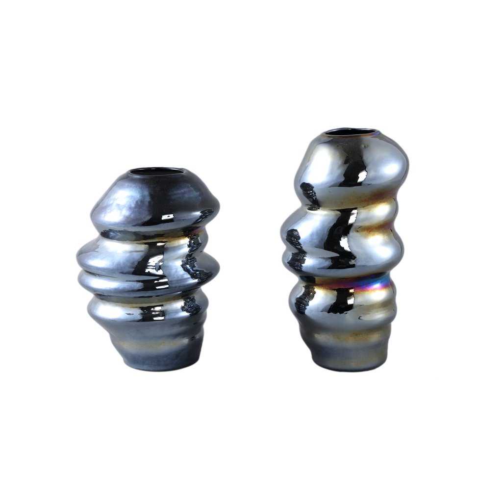 Orietta Blue Oily Look Glass Vase Wavy Round (S)