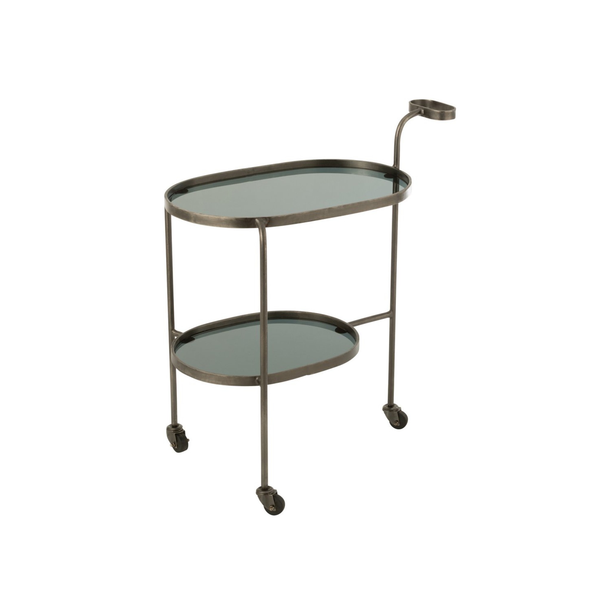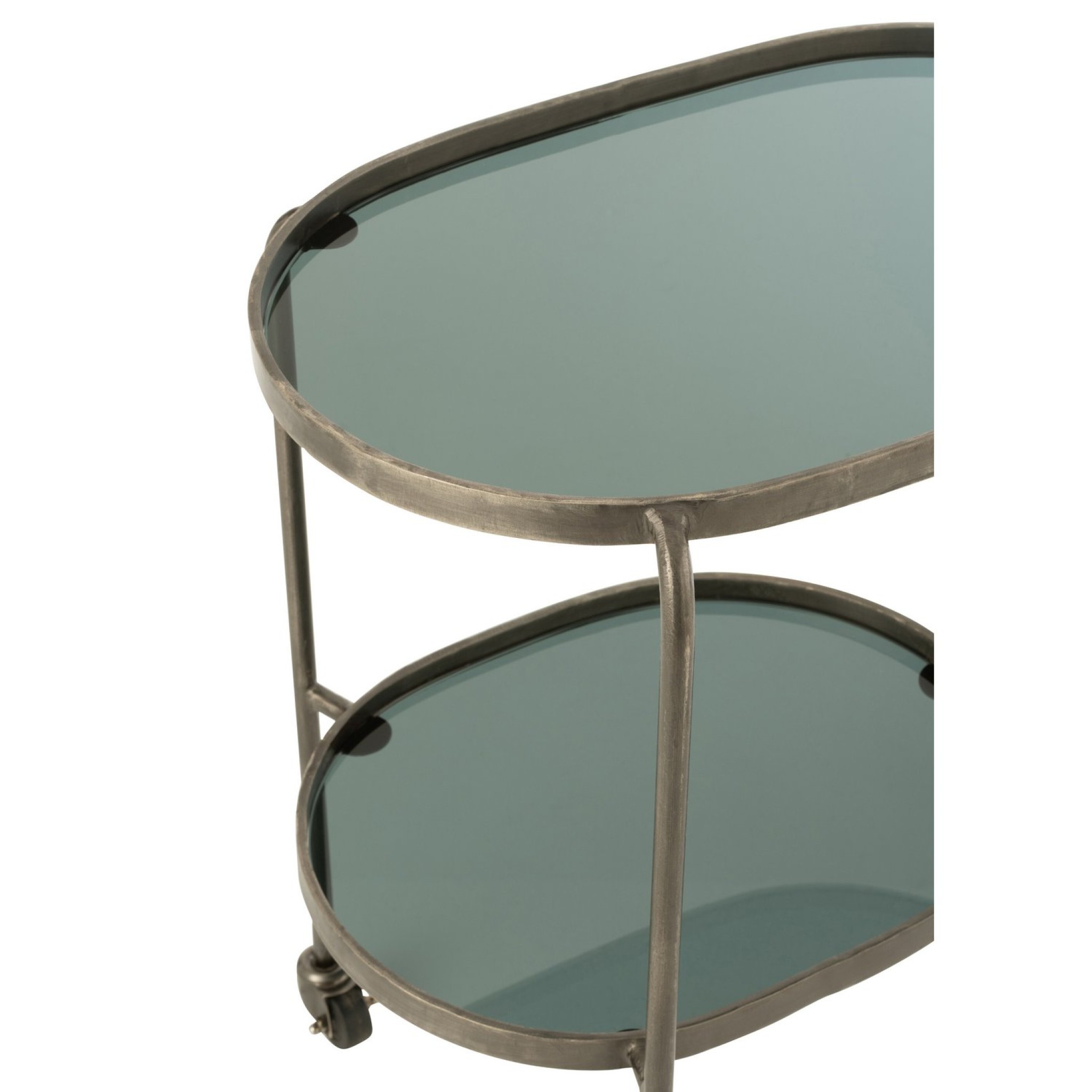 Ovale Serveerkar 2 Niveaus | Metaal en Glas, Beigegrijs