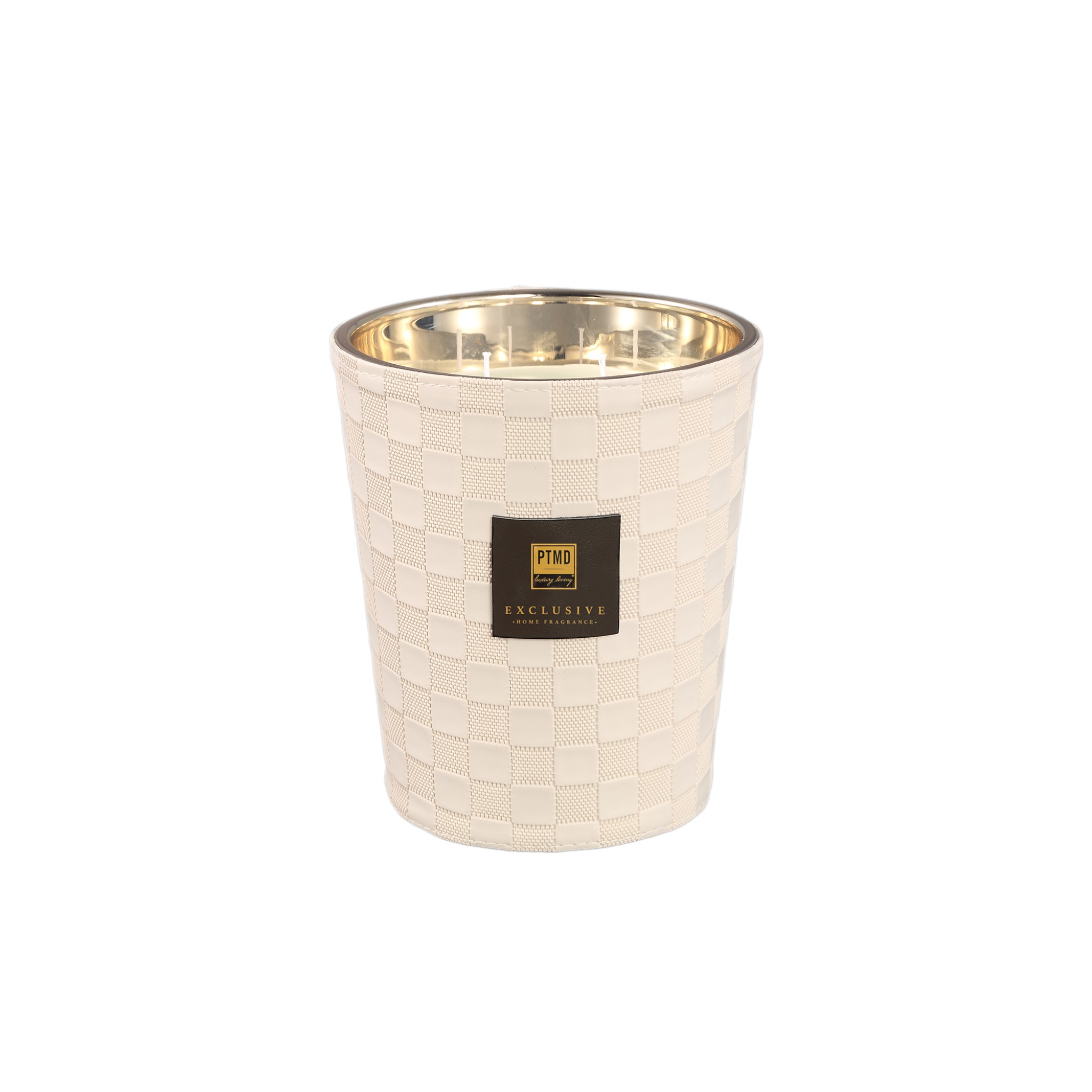 PTMD Exclusive Clean Linen Geurkaars | Luxe Design Kaars 1,4 kg | Goud/Beige/Zwart