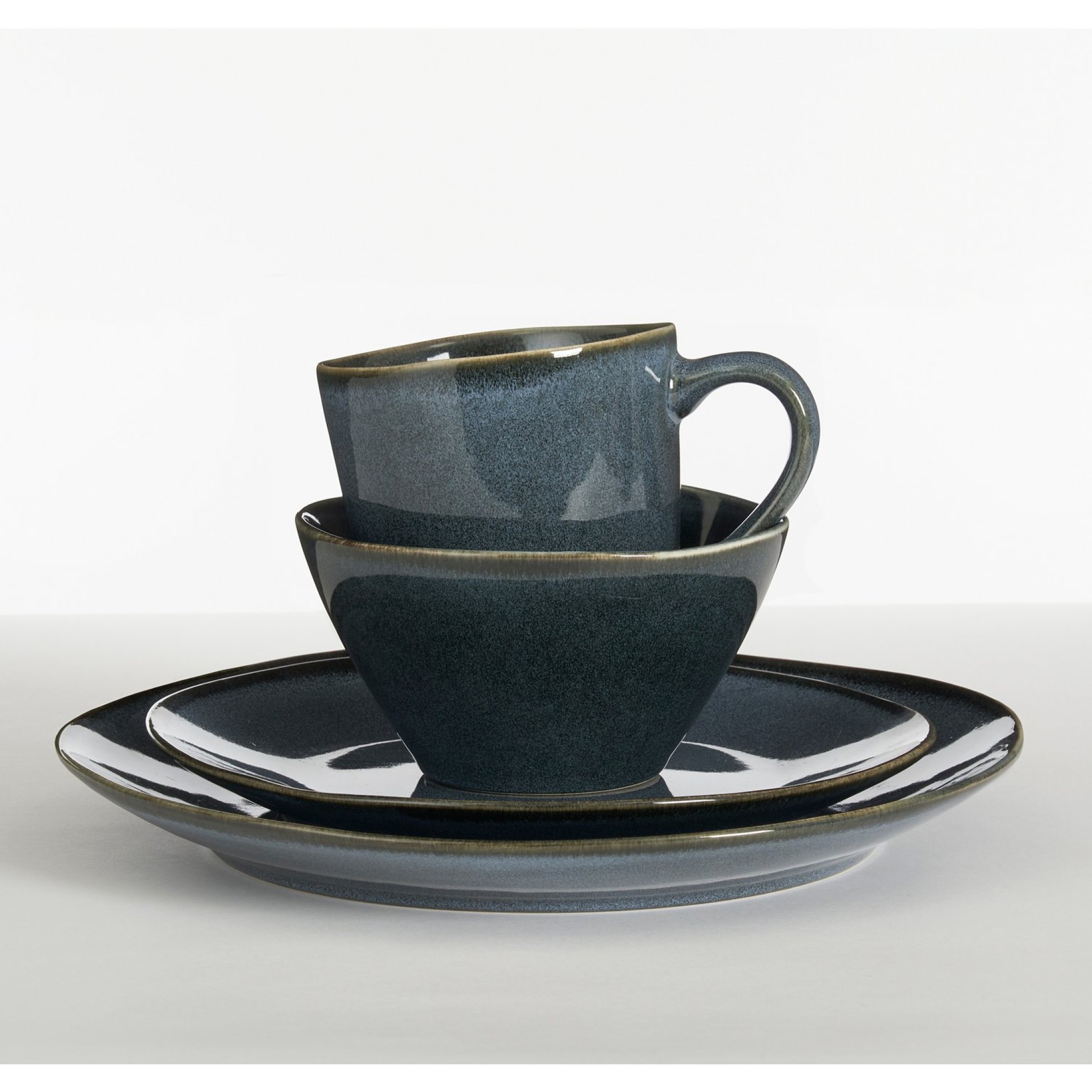 Elk item is gemaakt van duurzaam steengoed en afgewerkt in een stijlvolle donkergrijze tint met een subtiel donkerkleurig randje, waardoor de set een elegante en tijdloze uitstraling krijgt. De Racco serviesset is ideaal voor dagelijks gebruik en zorgt voor een mooi gedekte tafel bij speciale gelegenheden.