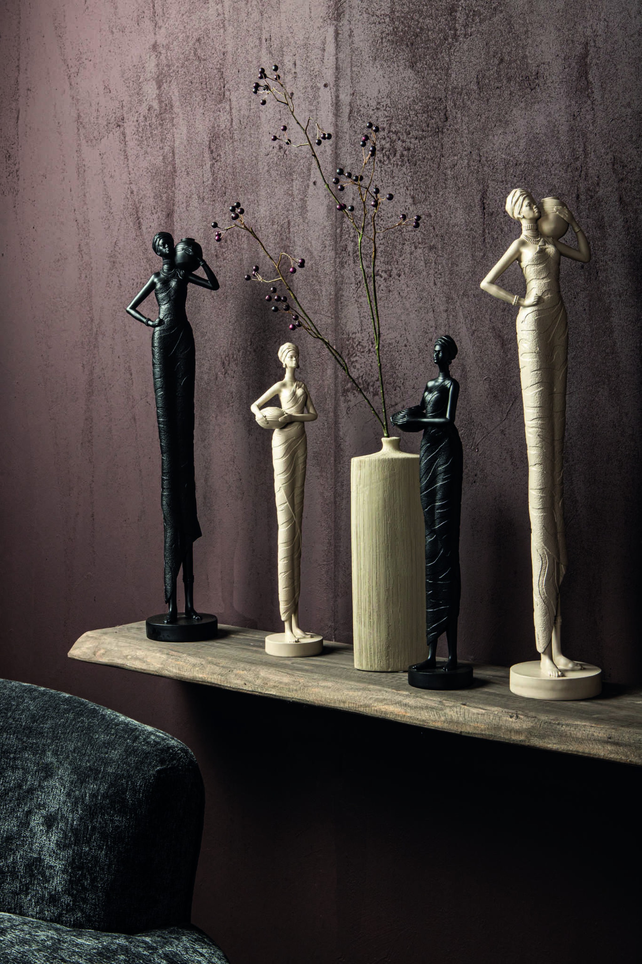 Rafah Zwarte Poly Vrouw Beeld | Met Pot 50 cm