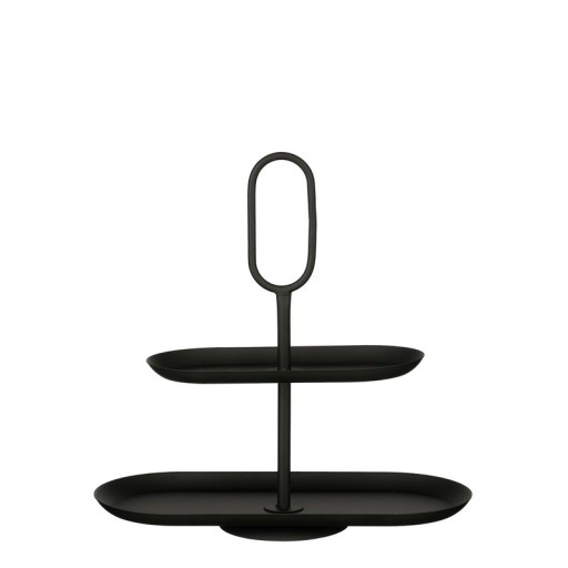 De Rama etagère van Mica Decorations is altijd handig voor het presenteren van snacks, als decoratiebasis of voor een gezellige High Tea. Deze 2-laagse etagère is gemaakt van metaal en heeft een moderne zwarte kleur, waardoor hij gemakkelijk in elk interieur past.