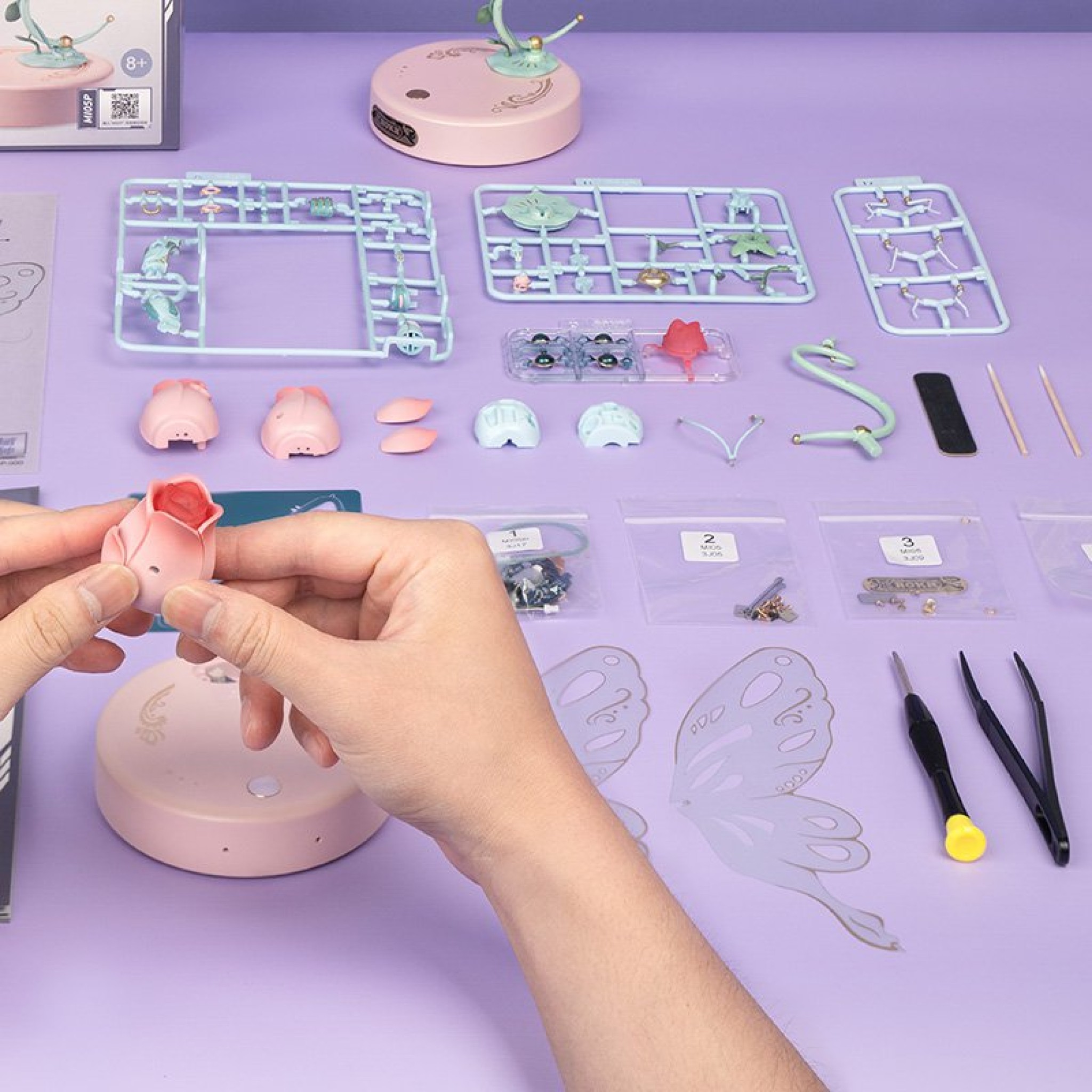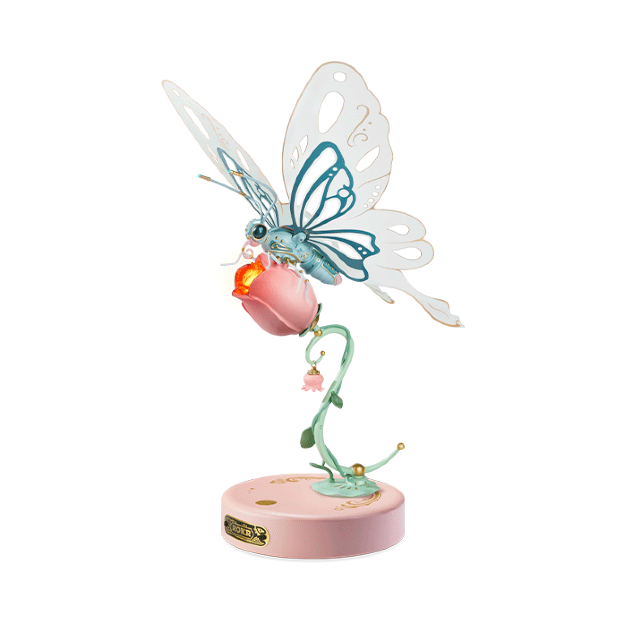De Robotime Butterfly Pink (MI05P) is een verfijnd DIY 3D bouwpakket waarmee je een prachtige vlinder in elkaar zet. Het model bestaat uit 79 onderdelen en combineert kunststof, metaal en licht om een decoratief kunstwerk te creëren.
