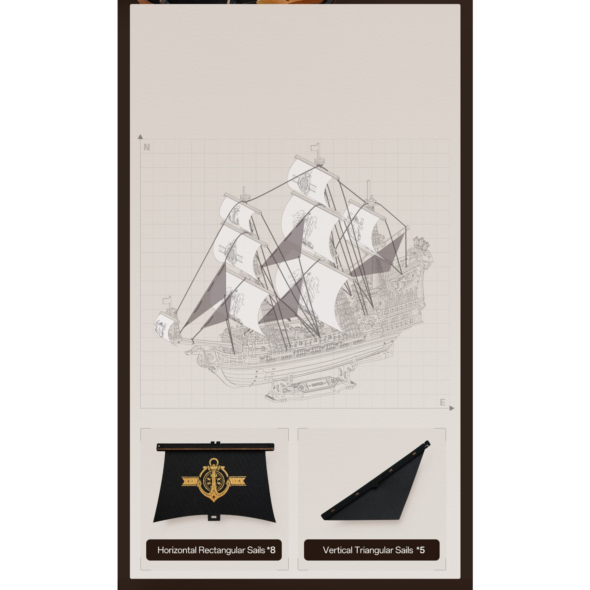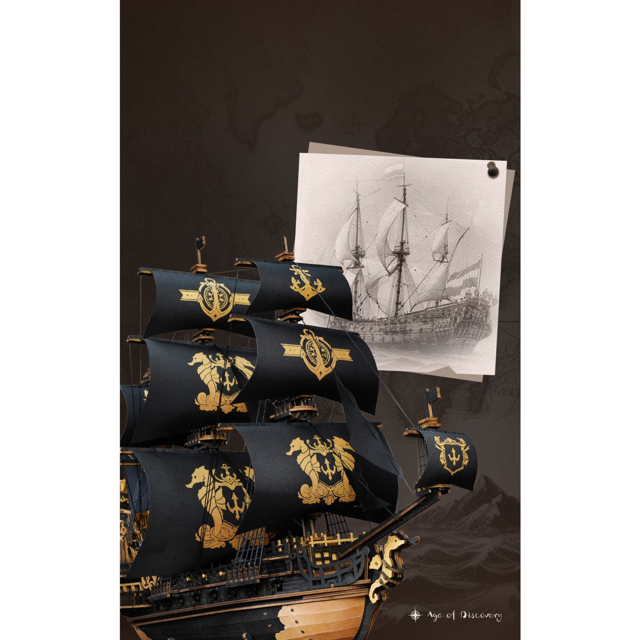 Robotime 3D Houten Puzzel The Seahorse Barque MCB02 | 603-delige Laser Cut Bouwset, 39x18x47 cm