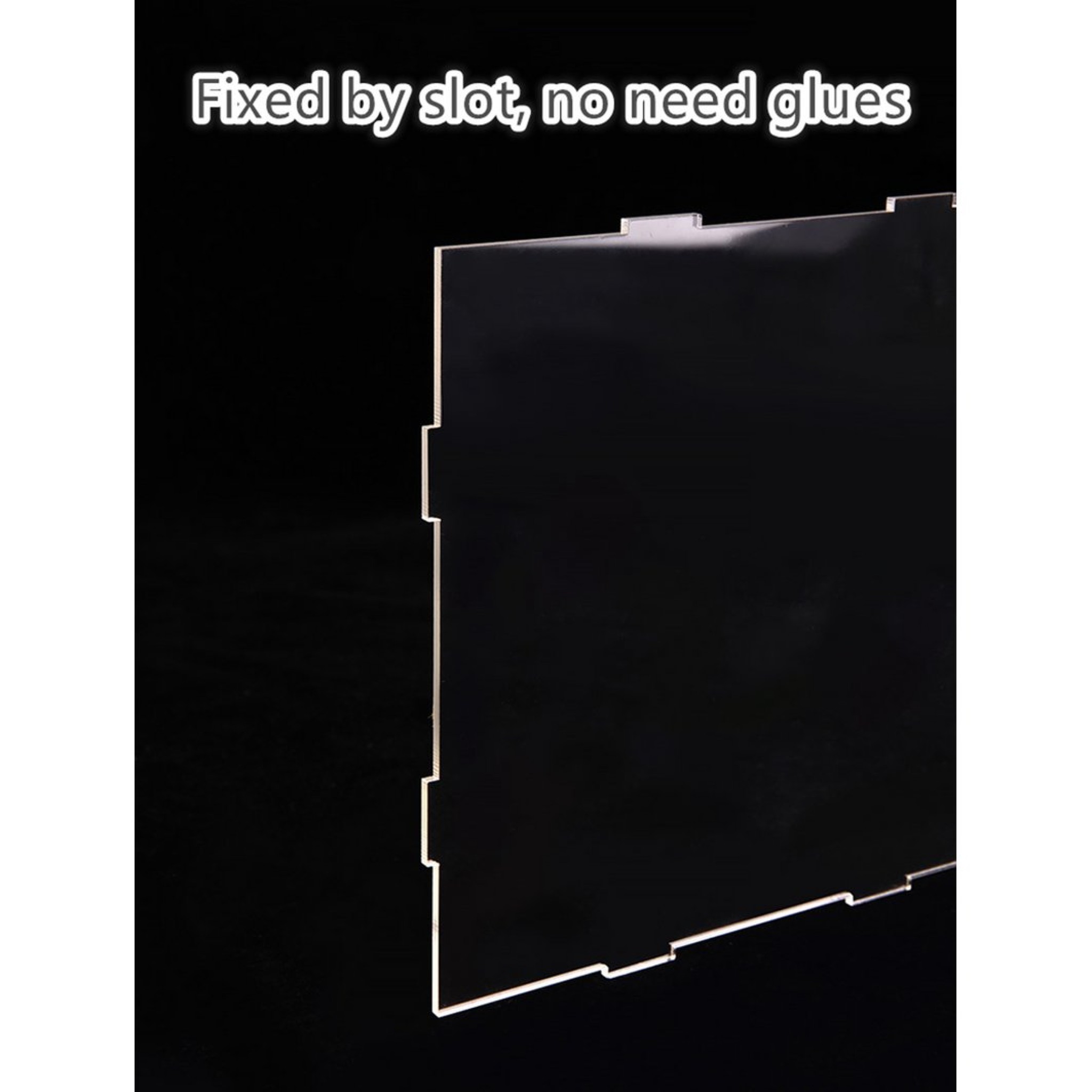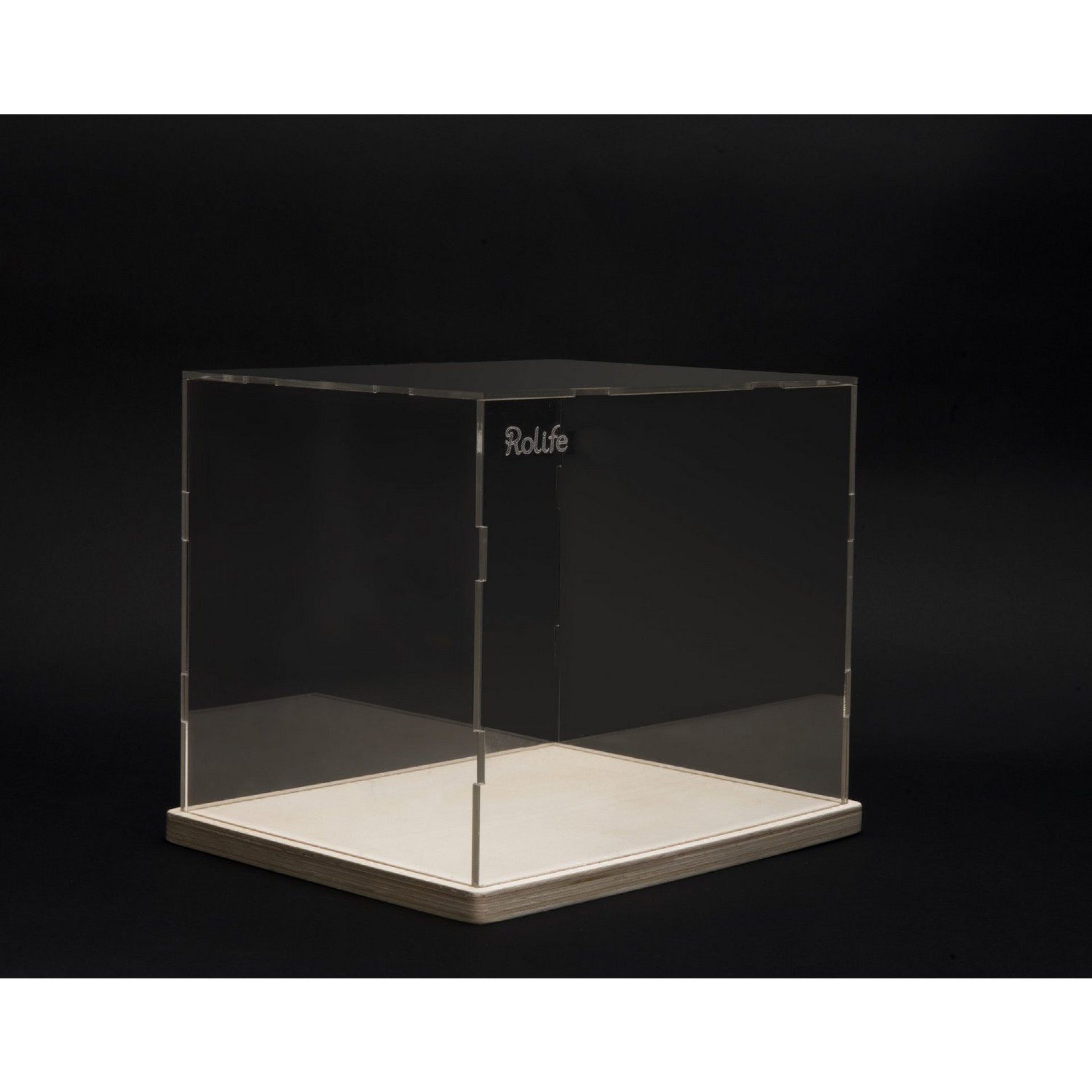 De stofkap wordt geleverd in een cadeauverpakking en bevat een stevige houten bodem en 6 transparante acrylplaten die eenvoudig in elkaar te monteren zijn. De acrylplaten zijn voorzien van een beschermfolie die je vóór gebruik verwijdert voor een kristalheldere presentatie.