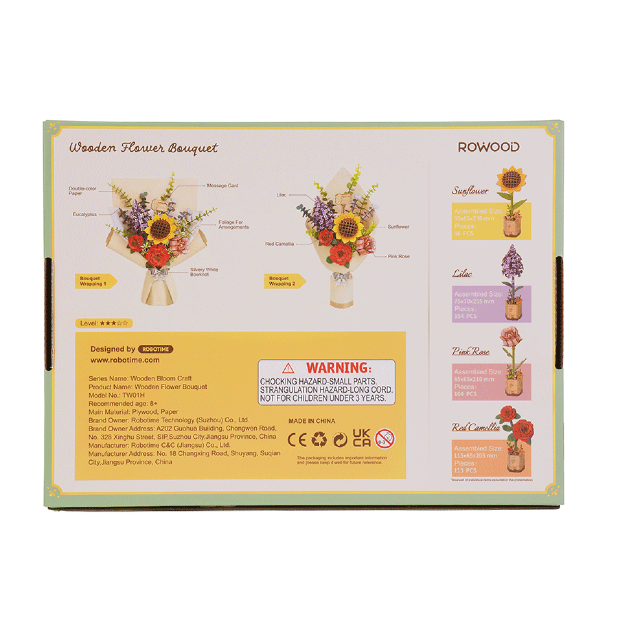 Creëer je eigen kleurrijke houten bloemenboeket met deze DIY-kit van Robotime. Handzaam, geschikt voor kinderen vanaf 8 jaar en perfect als uniek cadeau.