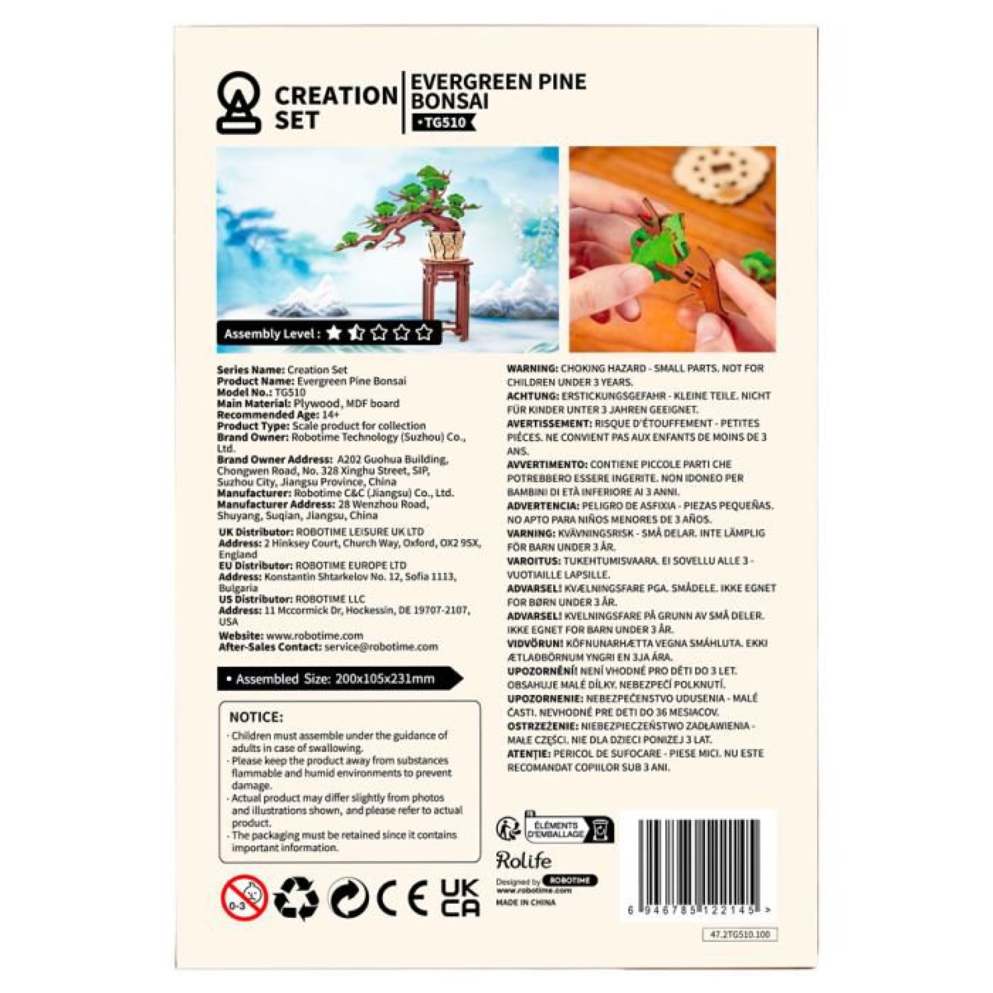 Robotime Evergreen Pine Bonsai | DIY 3D Houten Modelbouwpakket | TG510, 20x10,5x23 cm