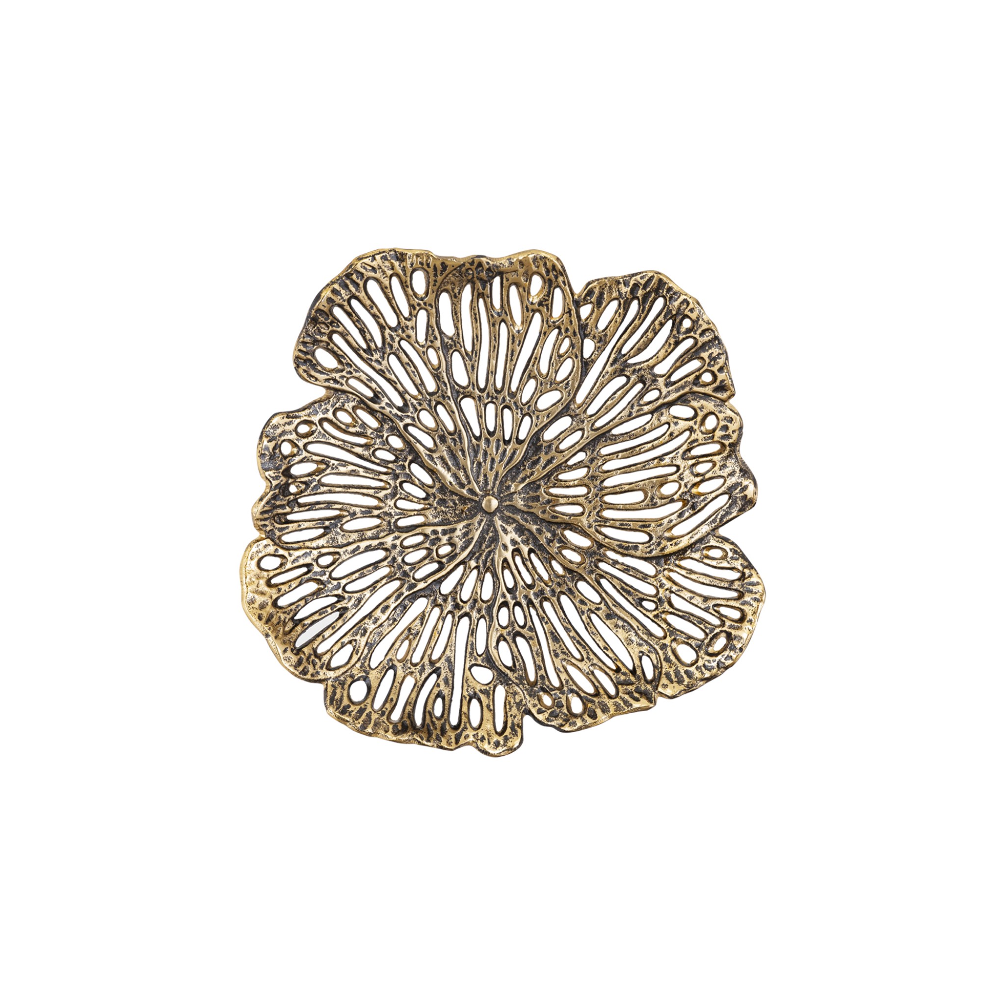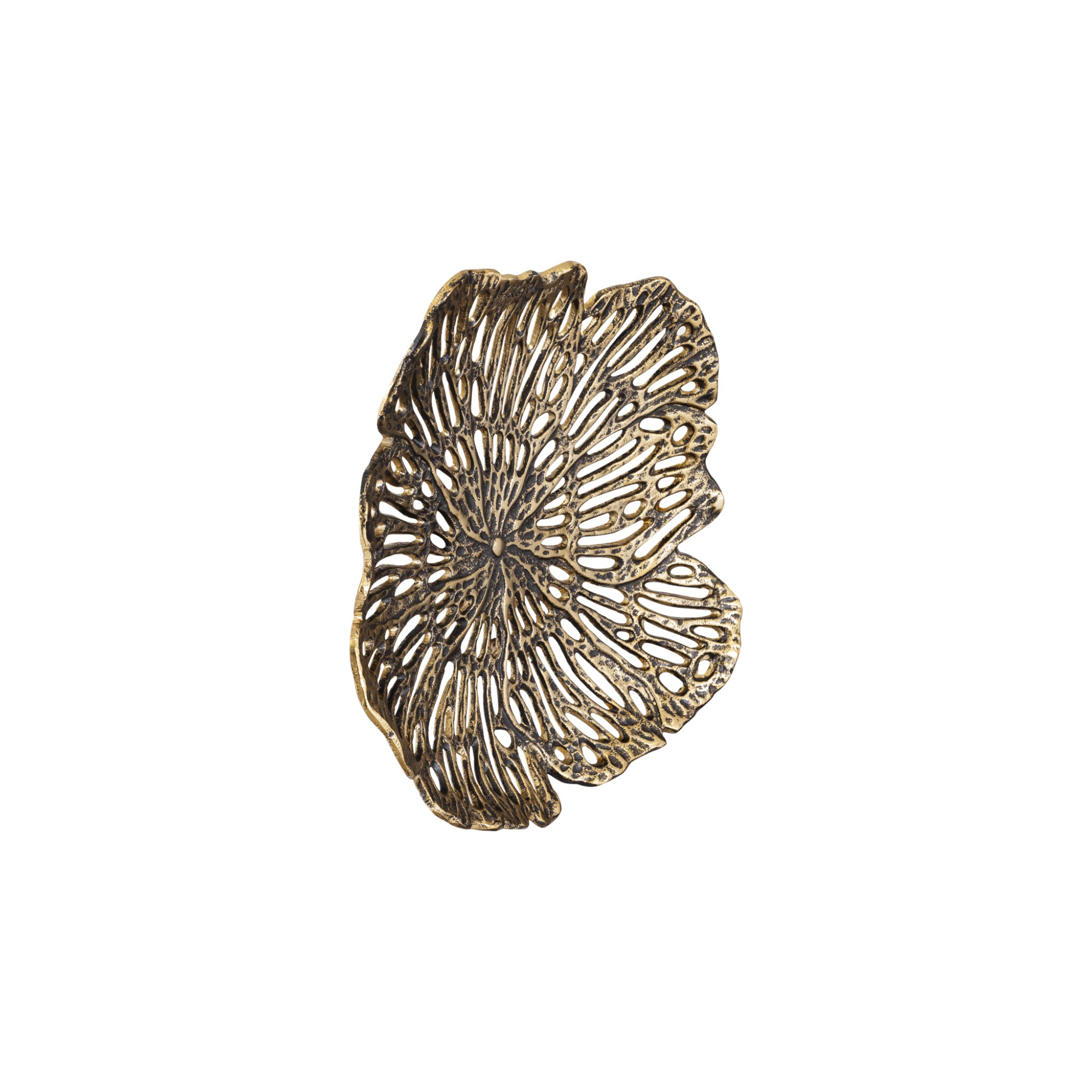 Handgemaakt kunstpaneel van gegoten aluminium met gouden afwerking. De Ryhann Flower Wall Deco Bowl S voegt elegantie en luxe toe aan elke muur. Afmetingen: 31 x 30 x 6 cm.