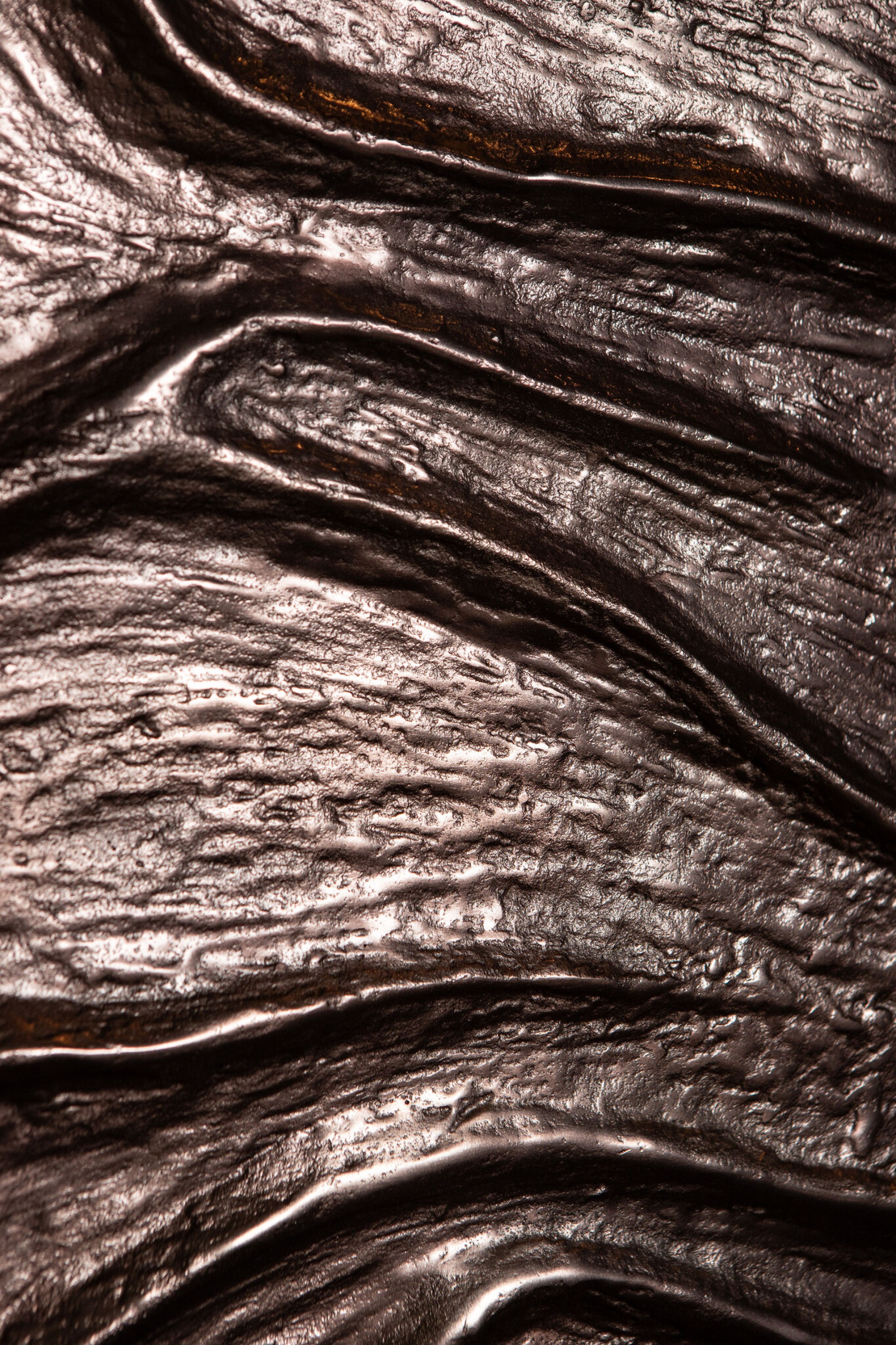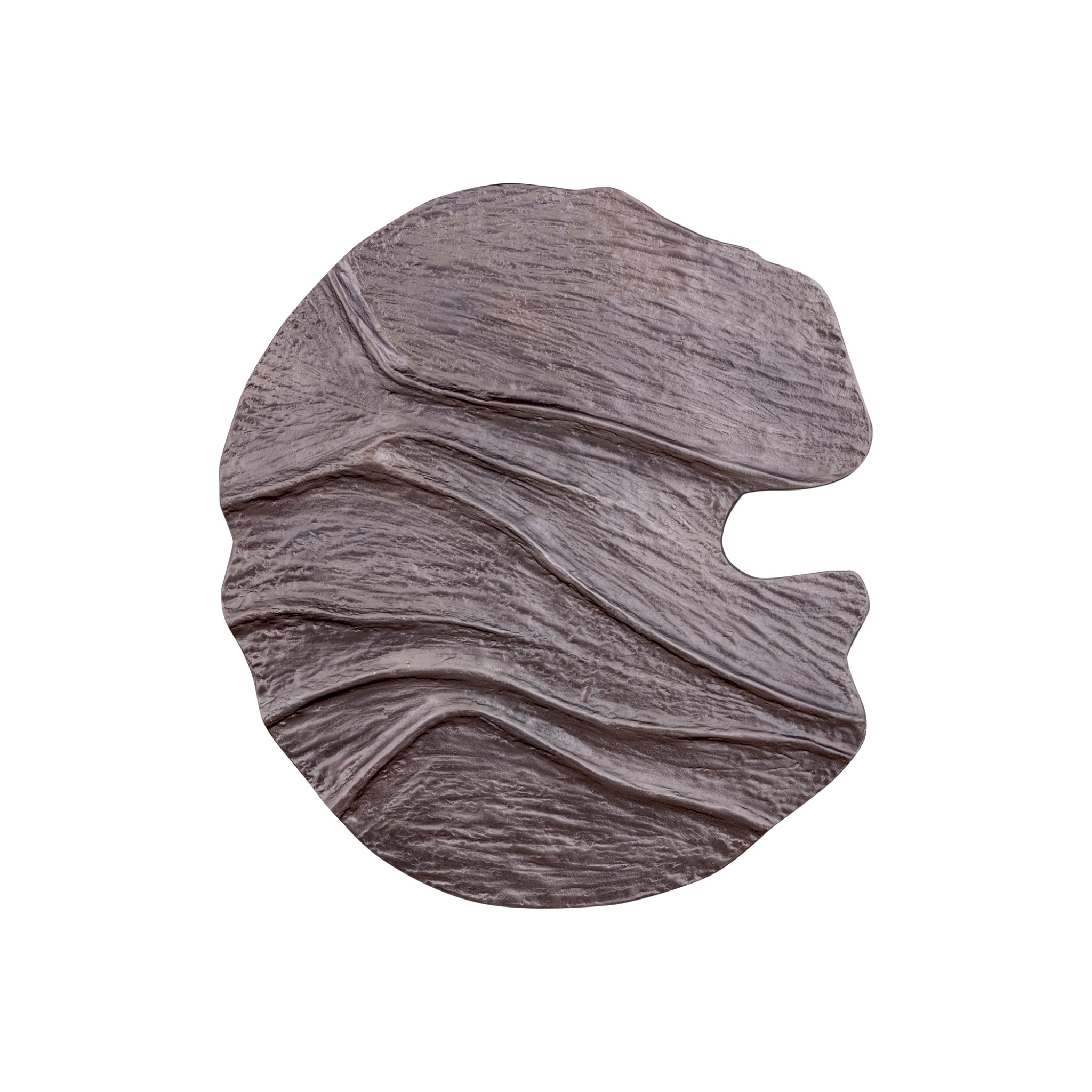 Luxe handgemaakt aluminium wandpaneel met golvend reliëf in bronzen look. Voeg diepte en moderne elegantie toe aan je interieur. Afmetingen: 71x64 cm.