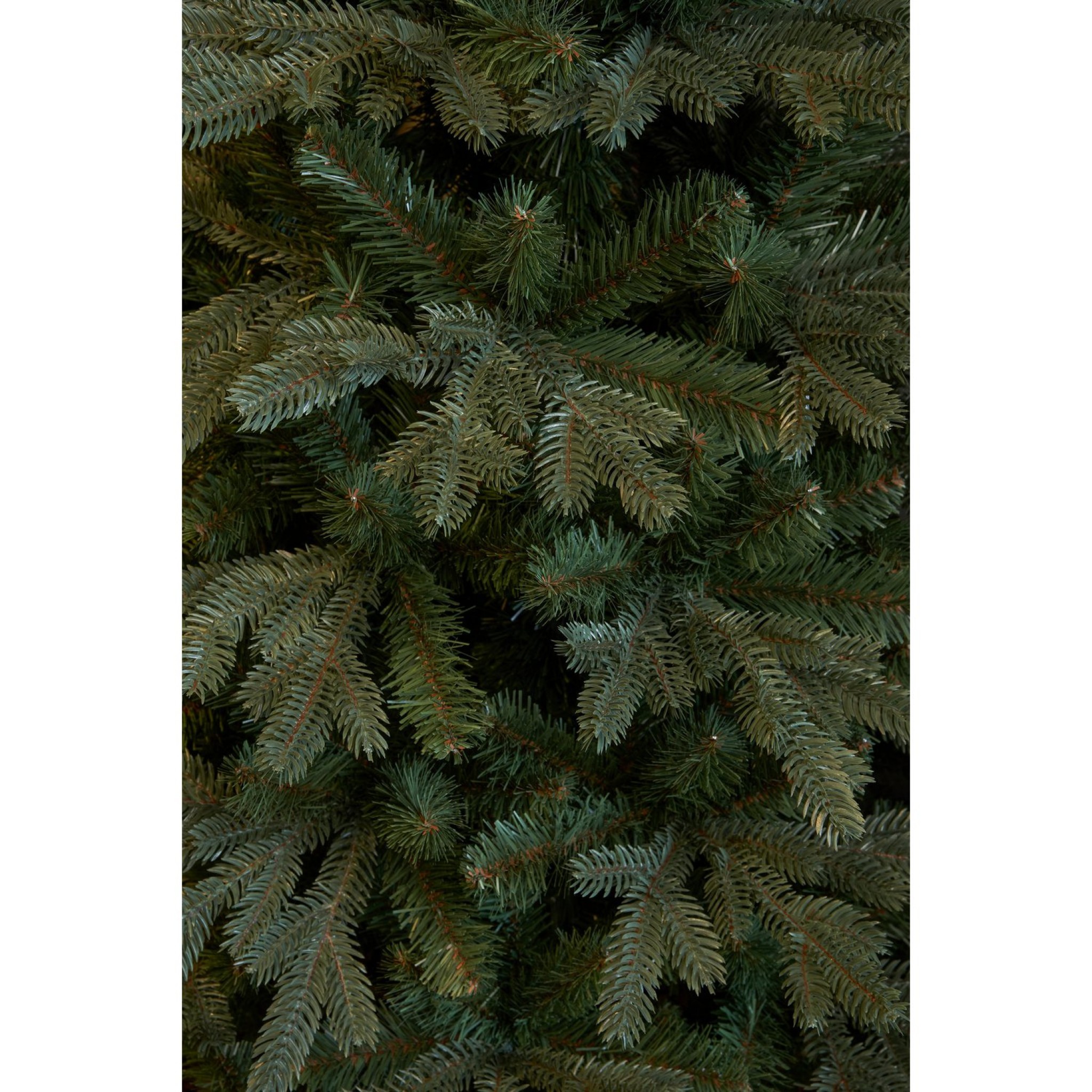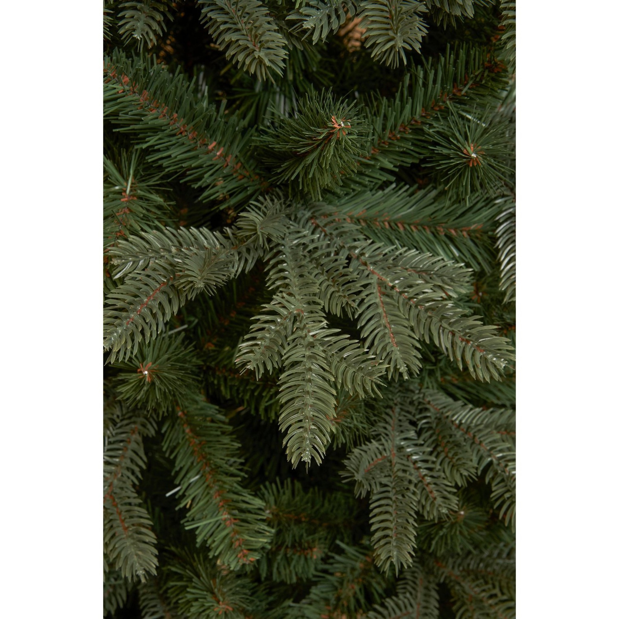 De boom is gemaakt van PE-takken, gevormd in een mal voor een exacte kopie van echte dennetakken, en PVC-takken voor extra opvulling. Hierdoor ontstaat een volle, stevige boom die bijna niet van echt te onderscheiden is. De grillige vorm en verschillende groene kleurnuances versterken het natuurlijke effect.