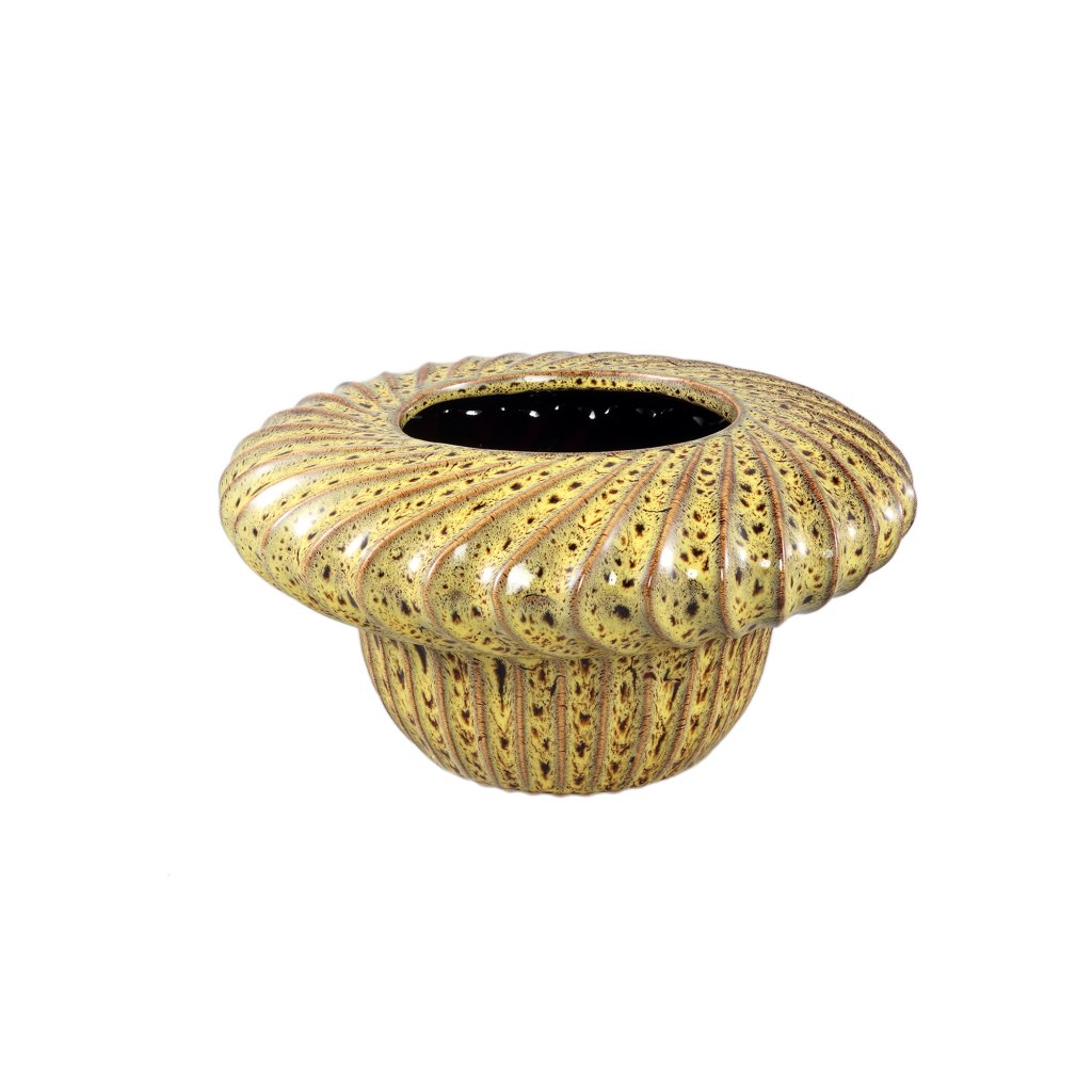 Sindi Yellow Ceramic Pot L | Rond | Geribbeld | Laag – Decoratief