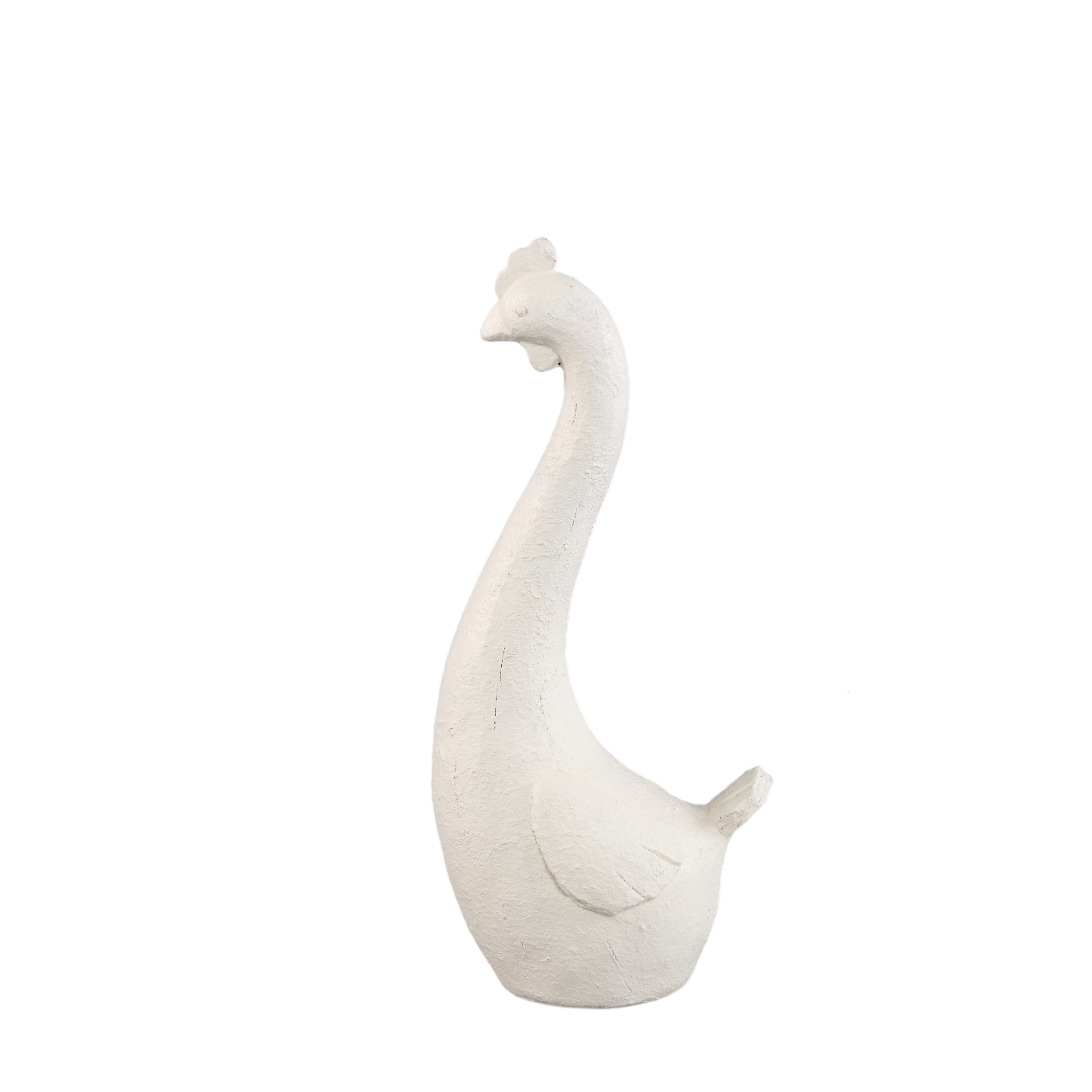 Witte polyresin kip als decoratiestuk. Elegant en stijlvol, 32 cm hoog, geschikt voor binnen.