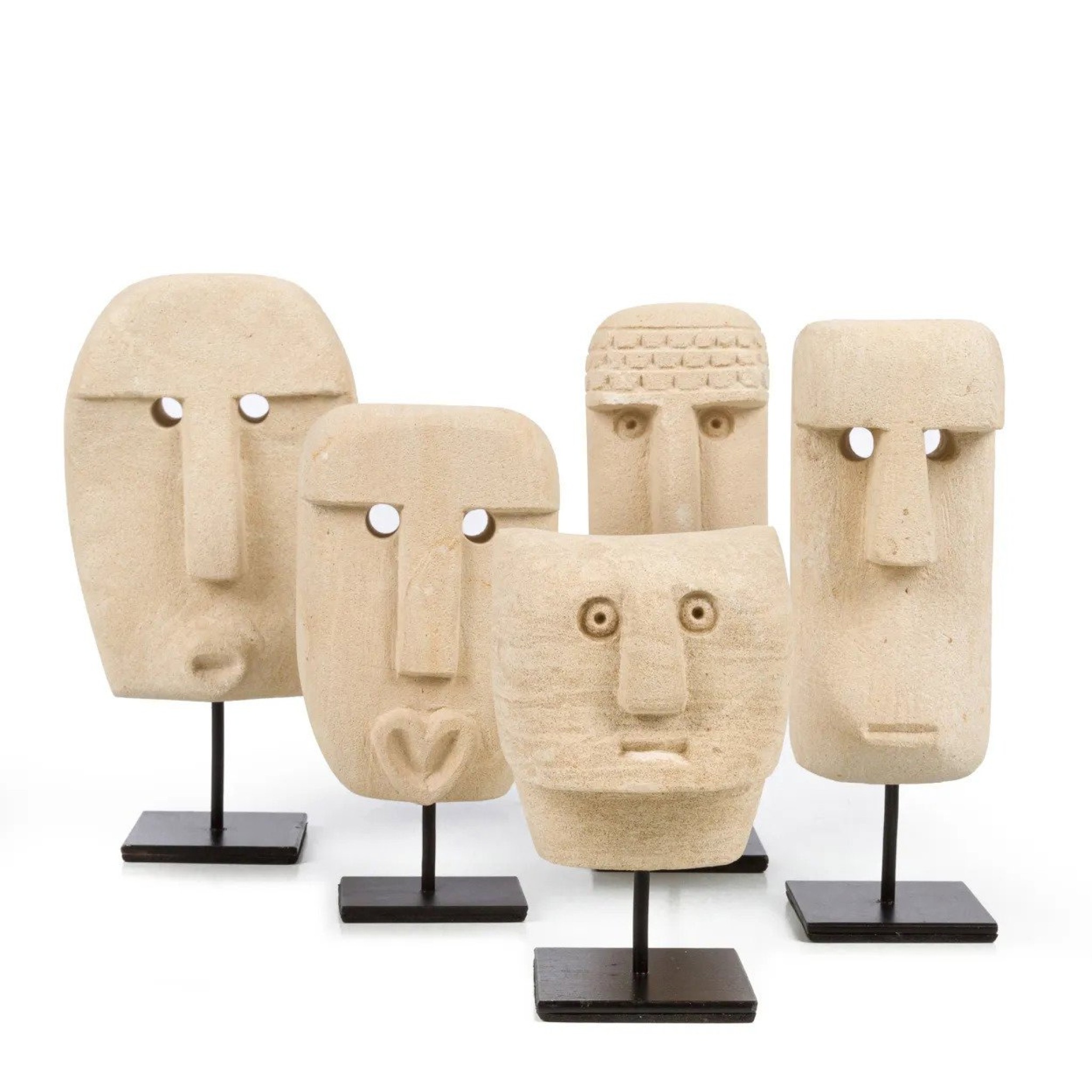 Handgesneden zandstenen beeld uit Sumba, Indonesië. Traditioneel beschermend symbool dat zowel losstaand als in een cluster een stijlvol statement maakt.