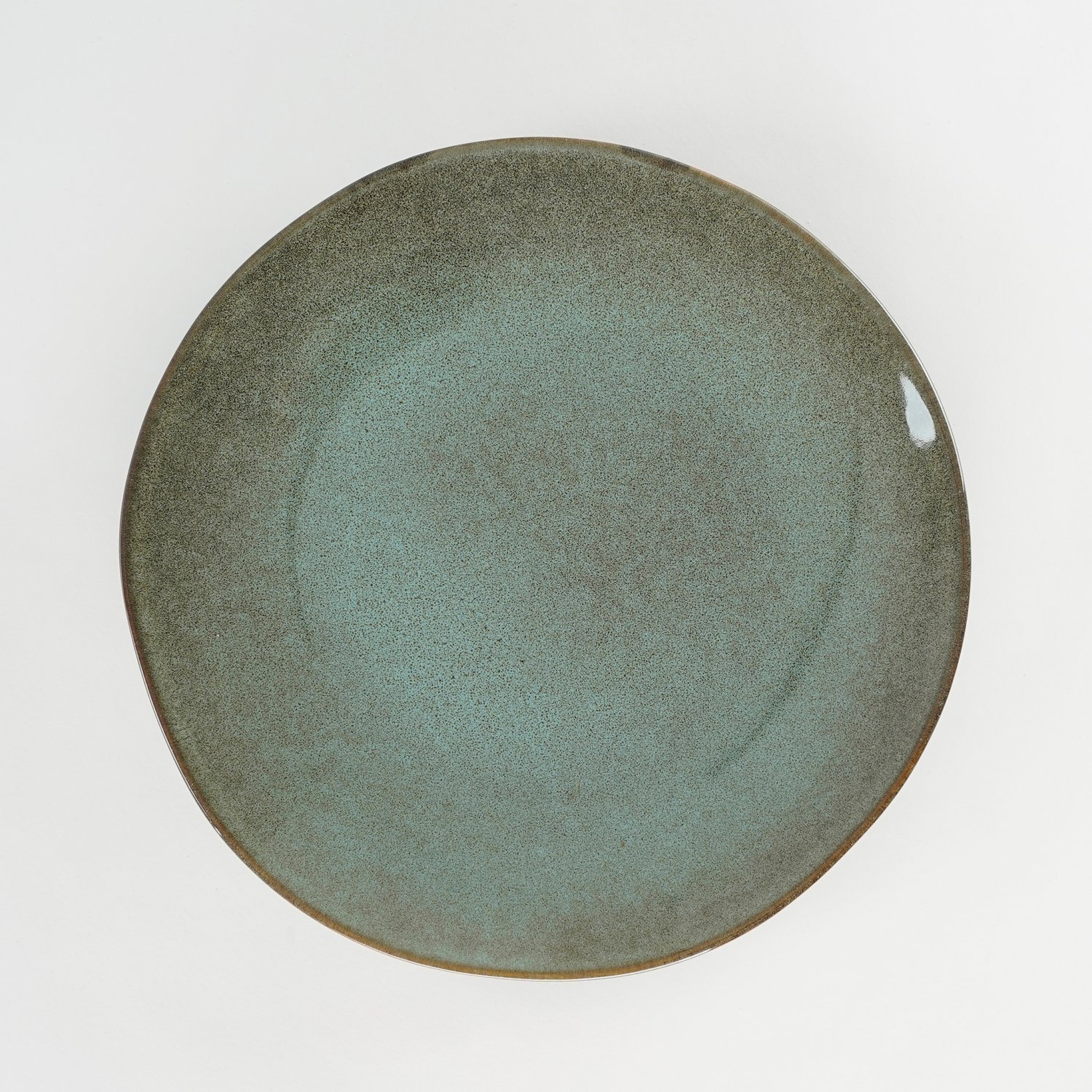 Rustiek en handgemaakt keramieken dinerbord van 26,5 cm Ø in groen met bruine accenten. Hittebestendig tot 180°C, geschikt voor magnetron en vaatwasser. Perfect voor dagelijks gebruik of als onderdeel van de Tabo serviescollectie.