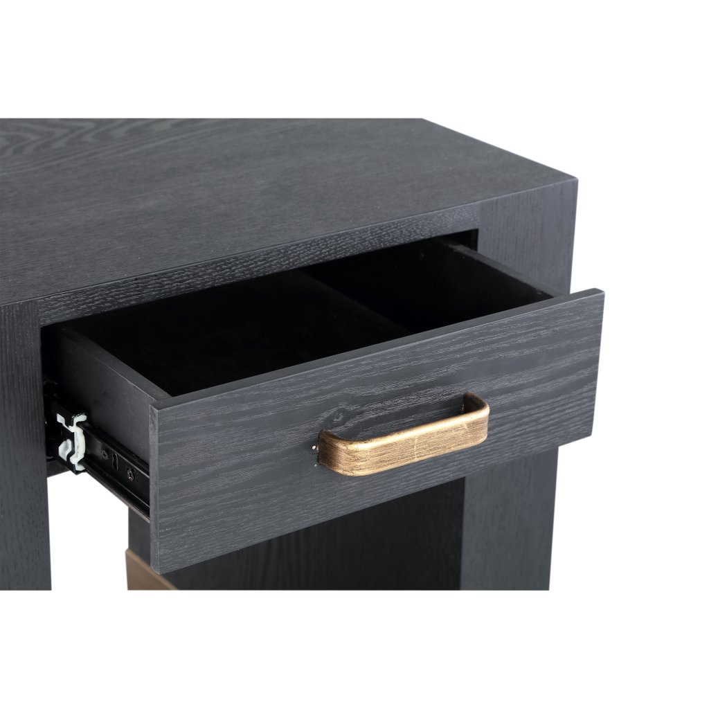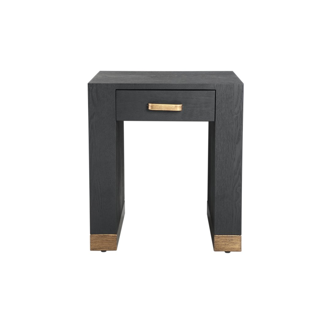 Tiess Nachtkastje | Zwart Houtfineer | 1 Lade – Gouden Accenten