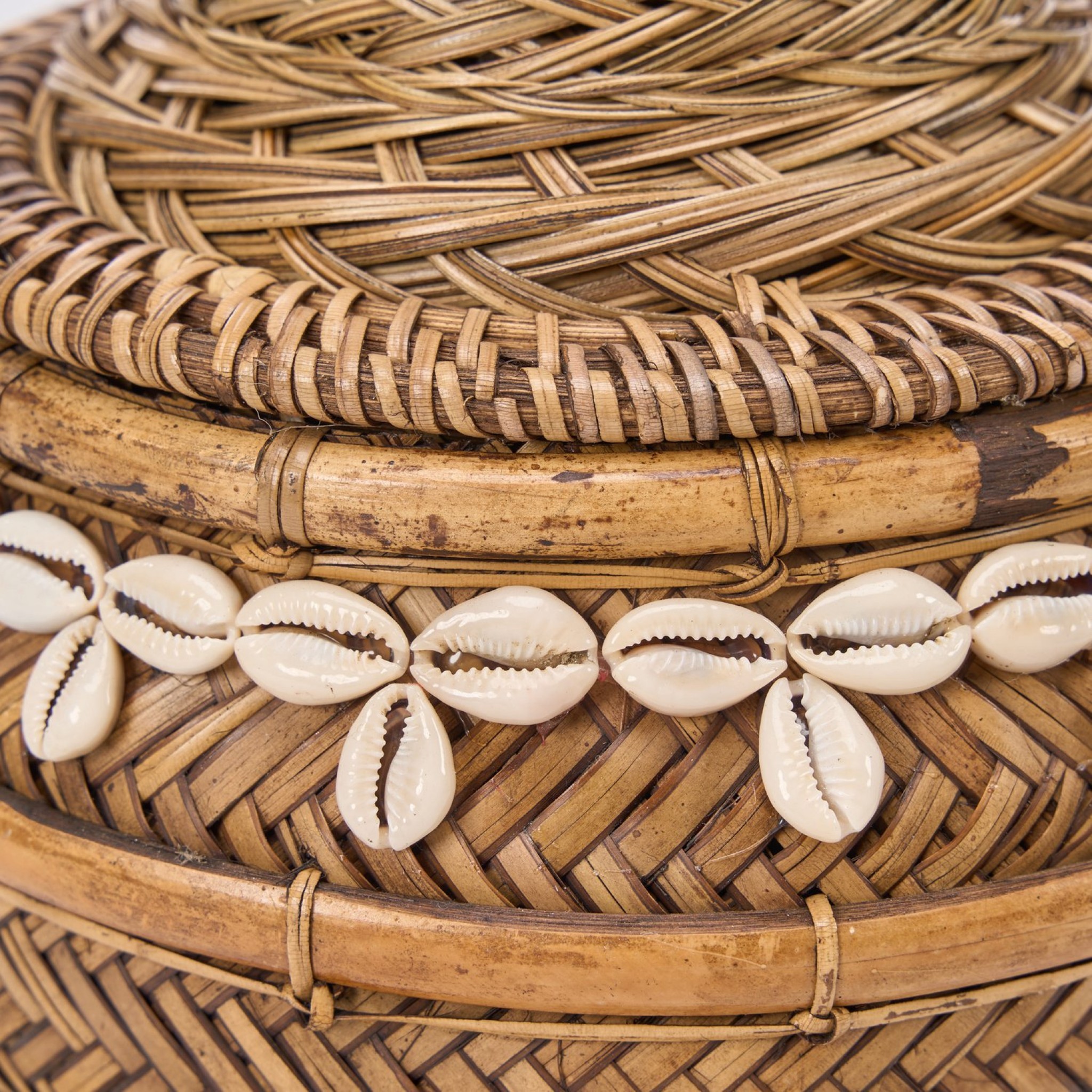 De geweven structuur en subtiele schelpdetails geven karakter en een organische charme die perfect past in rustieke, kust- of eclectische interieurs. Het compacte formaat maakt de doos ideaal voor het opbergen van kleine souvenirs, sieraden of andere persoonlijke spullen, terwijl hij discreet blijft op een plank, nachtkastje of bureau.