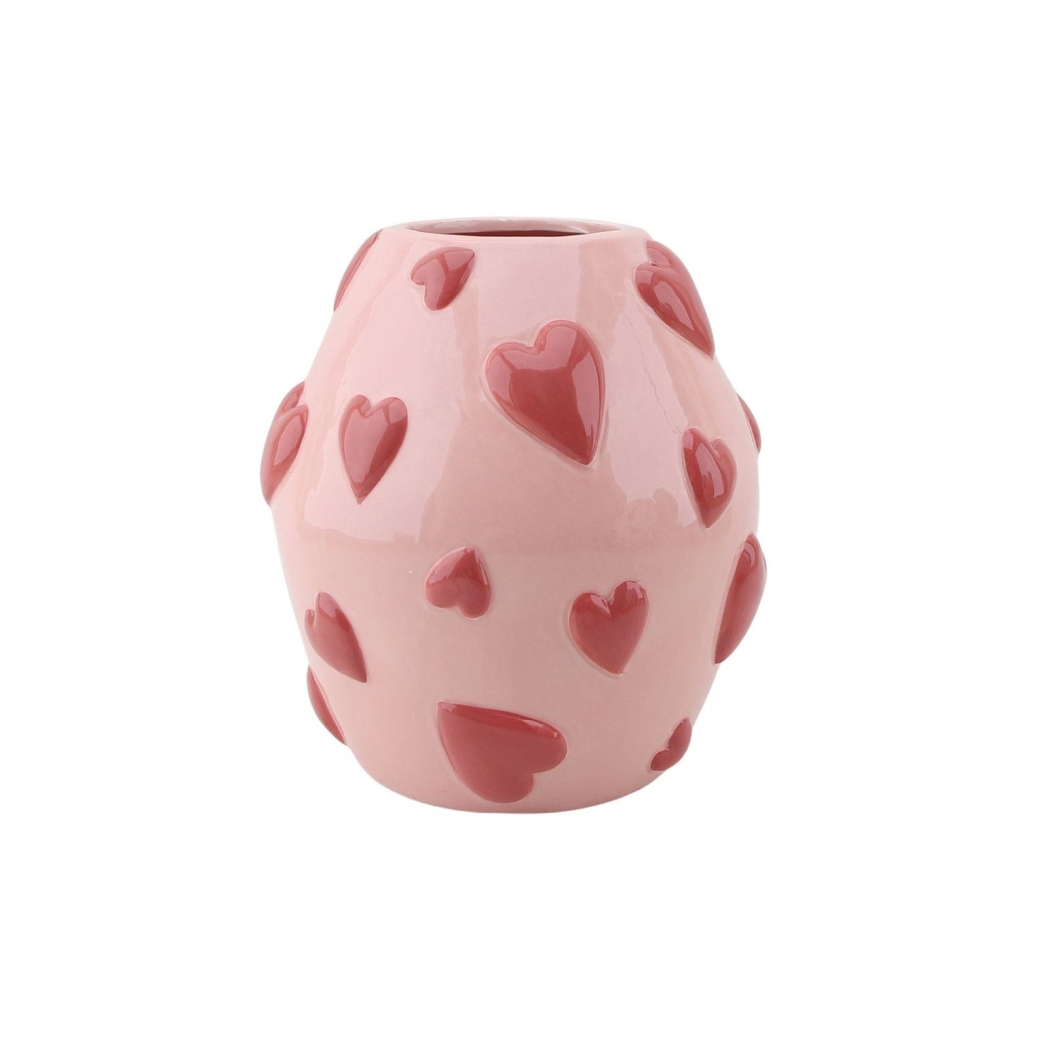 Vaas Flower Vase Harten | Dolomiet | Pink/Rood | 16x16x17,5 cm