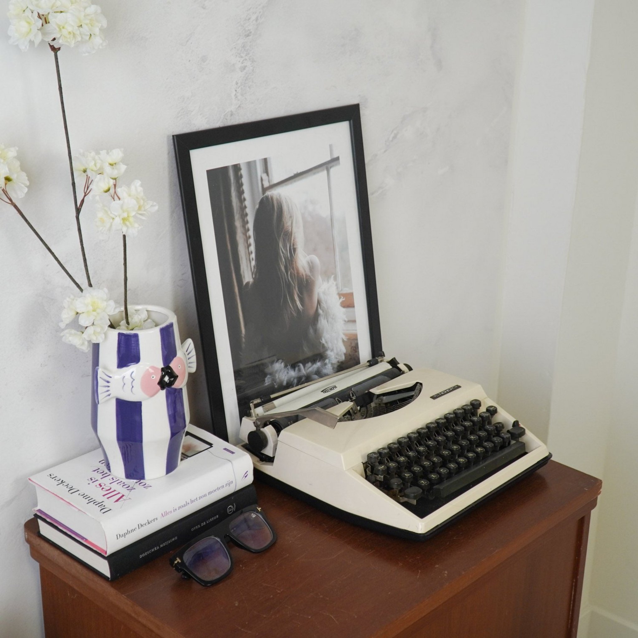 Woonkamer, vensterbank, tafel, dressoir