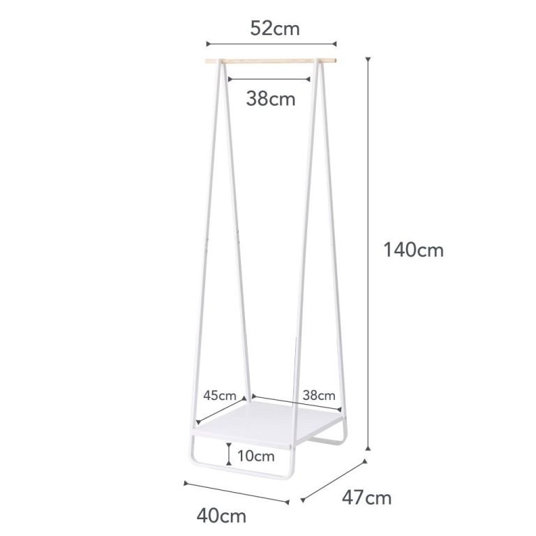 Het Yamazaki Tower Kledingrek 2.0 is een stijlvol wit kledingrek met een praktische onderplank voor schoenen, tassen of accessoires. Perfect voor een opgeruimde en georganiseerde garderobe. Afmetingen: 47x140x52 cm.